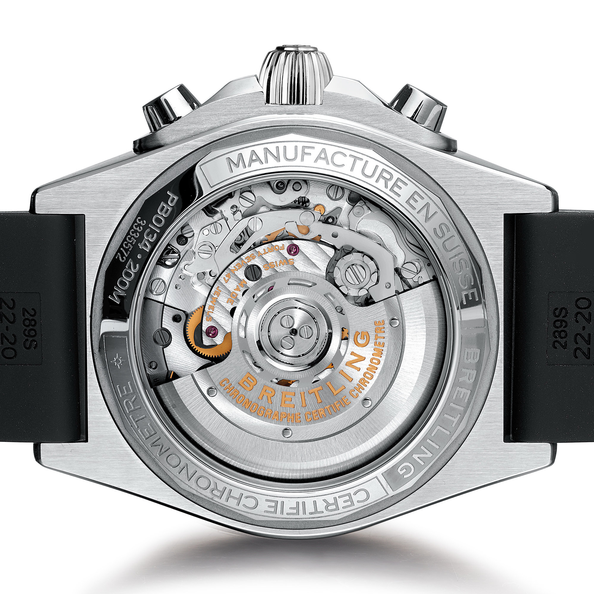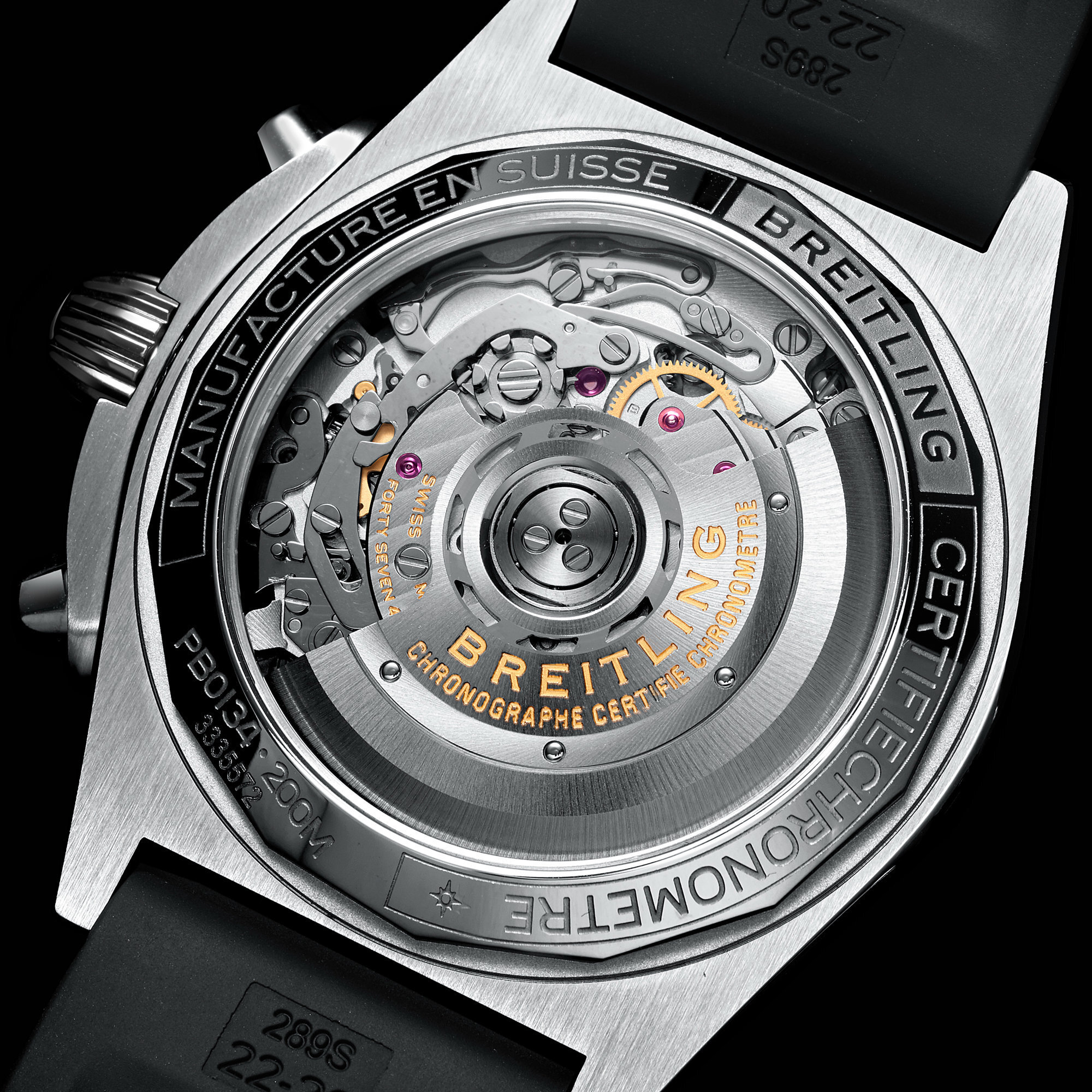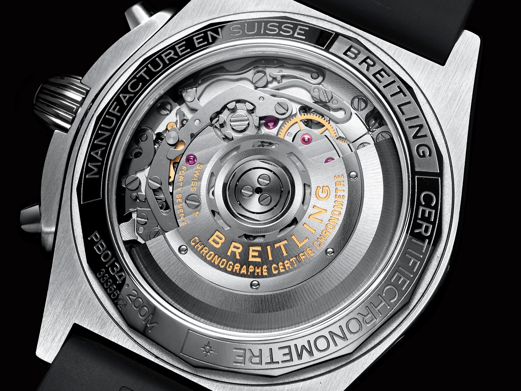 Inside beats the COSC-certified Breitling Caliber 01 automatic movement, operating at 28,800 vph (4 Hz) and offering a 70-hour power reserve.