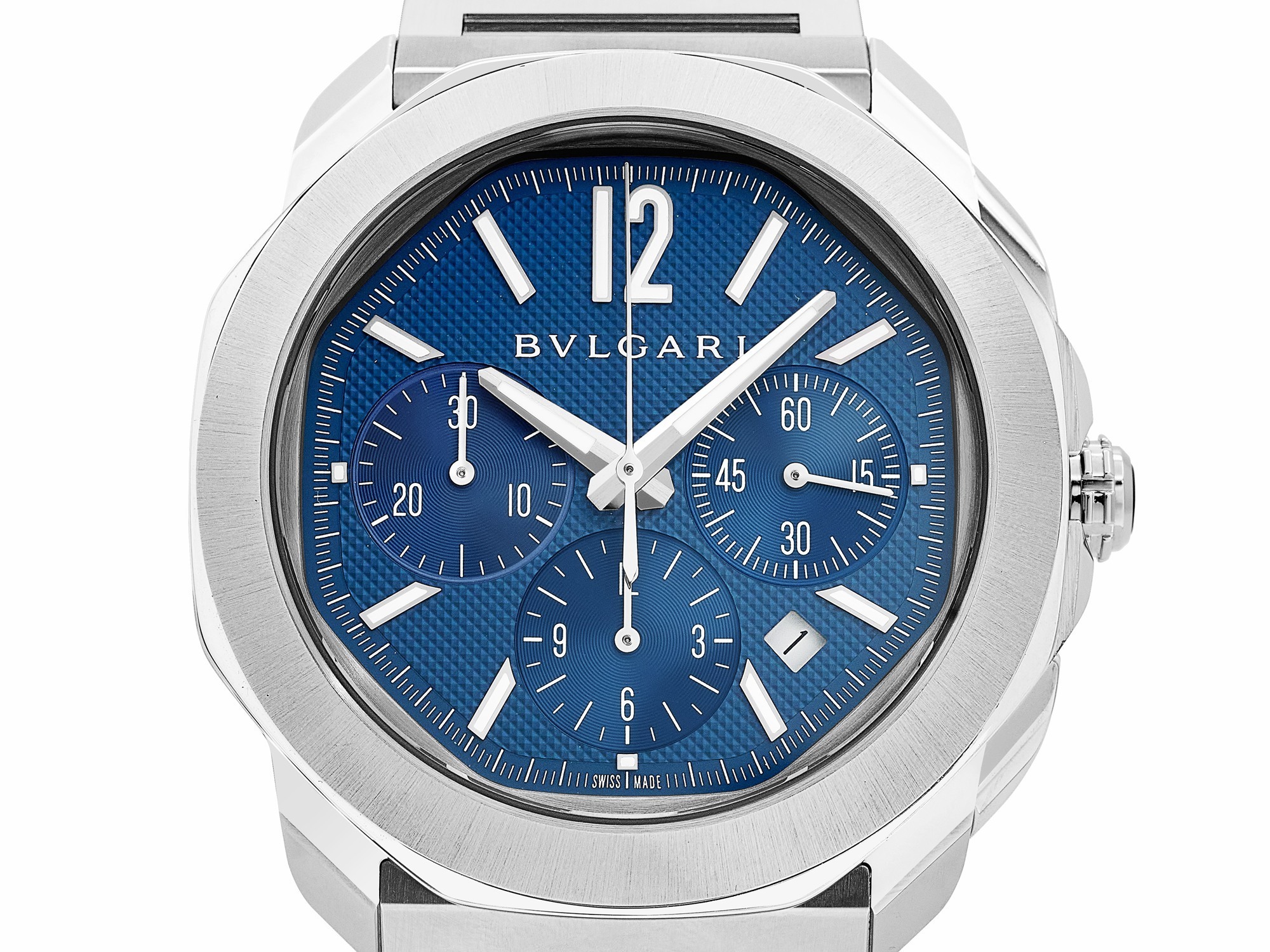 Stainless steel case, 42mm diameter, 12.4mm thickness, stainless steel bezel, screw-down crown, sapphire crystal, Clous de Paris guilloché dial, BVL 399 self-winding movement, 28,800 vph, 42-hour power reserve, stainless steel bracelet, folding clasp, 100m water resistance.