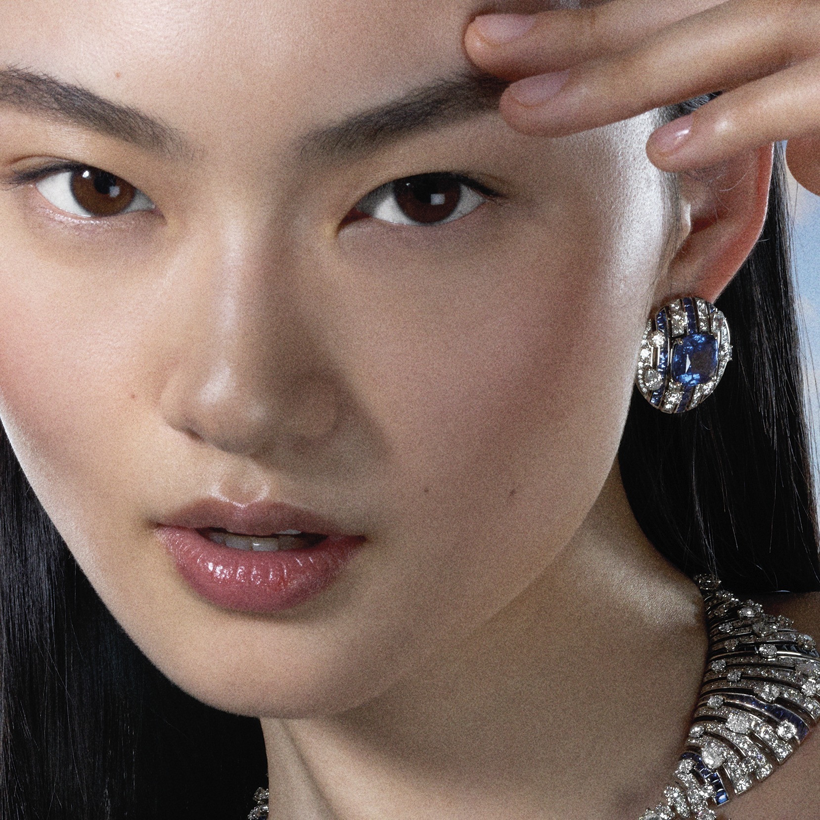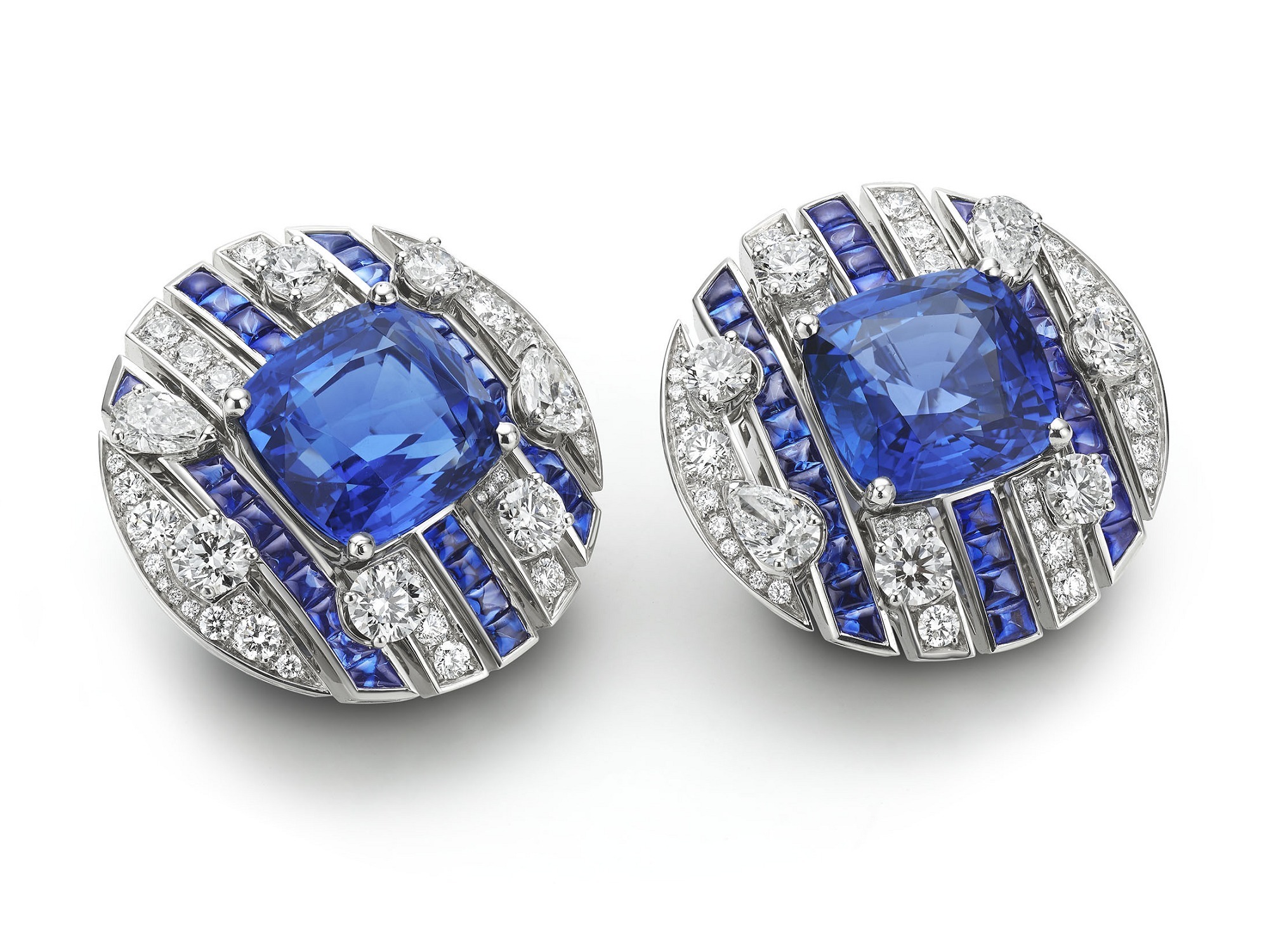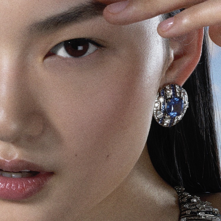 BVLGARI introduced this pair of sapphire earrings in its 2021 ‘Magnifica’ High Jewelry collection. Centered around the sapphire, the favorite gemstone of Nicola Bulgari, the brand founder’s grandson, the standout feature is the contrasting blue and white dual-color design, making the adornment at the earlobe a captivating focal point.