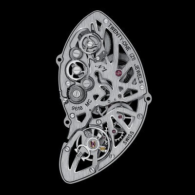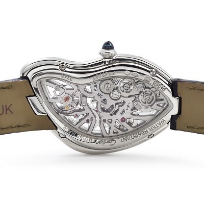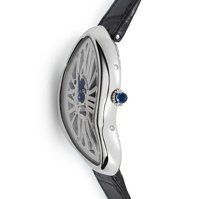Powering the Crash Skeleton is the 9618 MC hand-wound movement, specifically designed to fit perfectly within the uniquely shaped case. The movement offers a 3-day power reserve, and the sapphire crystal caseback allows you to appreciate the finely finished movement, complete with an engraved number and Cartier’s signature “C” on the balance wheel.