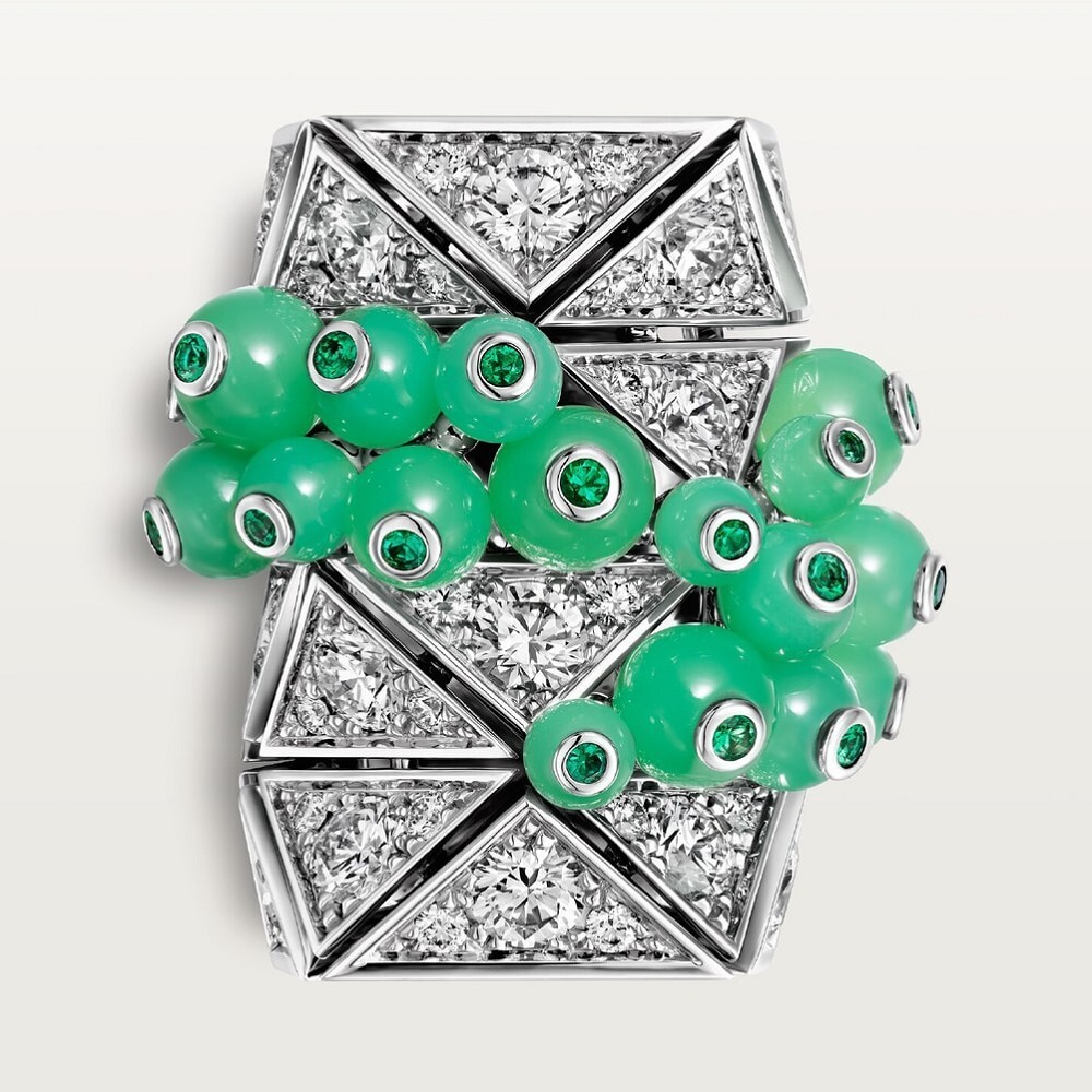 Complementing the fire of diamonds, it is sparkling and sharp; numerous fruit beads emerge from the geometric structure, bringing bursting vitality to jewelry works.