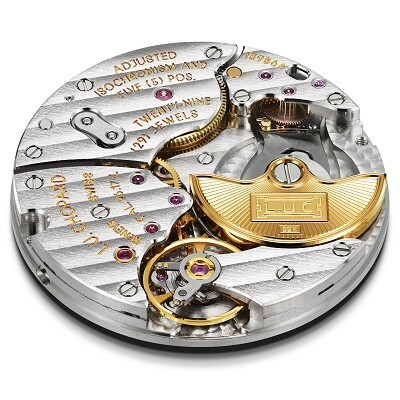 18K rose gold case, 39.50mm diameter, 7.13mm thickness, sapphire crystal, open caseback, gold-plated markers, gold-plated dauphine hands, L.U.C 96.12-L automatic movement, 29 jewels, 28,800 vph, double barrel, 65 hours power reserve, COSC-certified, hand-stitched alligator leather strap, 18K rose gold pin buckle, water-resistant to 30 meters.