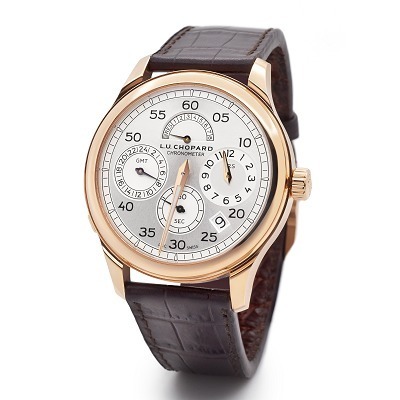 18 K rose gold case, 43 mm diameter, 9.78 mm thickness, sapphire crystal front and back, rose gold crown, manual-winding L.U.C Calibre 98.02-L, 39 jewels, 28,800 vph, 216-hour power reserve,alligator leather strap with 18 K rose gold buckle, water-resistant to 50 meters.