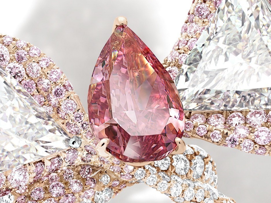 Cindy Chao specifically selected this precious 3.31-carat pink diamond as the centerpiece. Cut into a pear shape and set with a delicate claw setting, the diamond’s dazzling fire is showcased to its maximum potential.