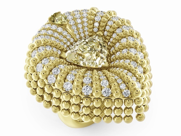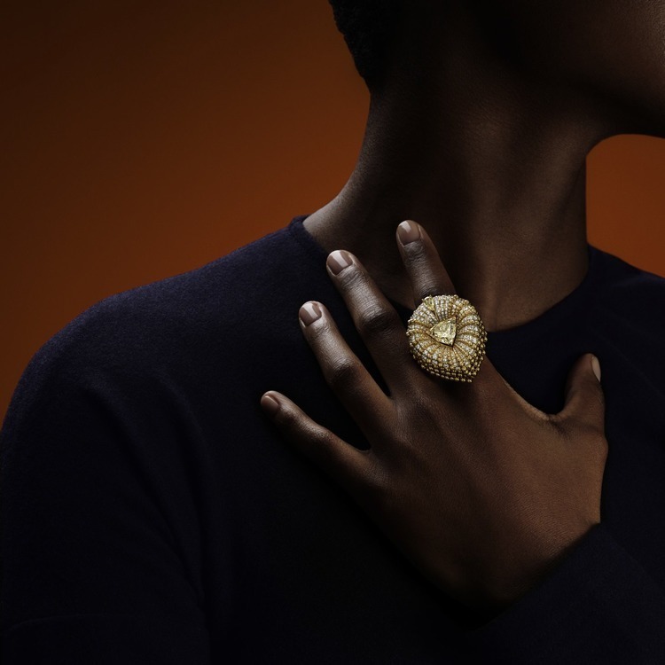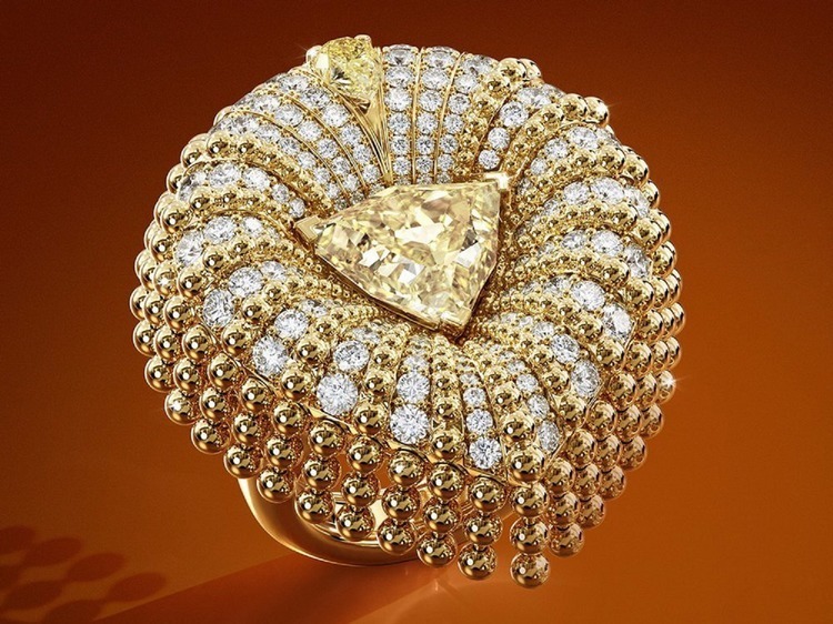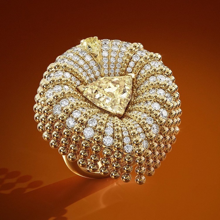 The decorative outer frame is crafted in gold and alternates between handcrafted gold beads and round brilliant-cut diamonds to represent the lion’s luxurious mane. Each gold bead undergoes meticulous mirror polishing, creating a brilliant interplay with the sparkle of the diamonds, reminiscent of a lion proudly raising its head.