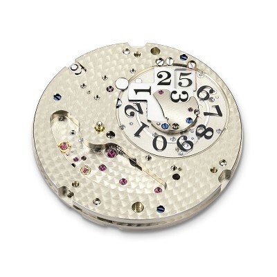 The 41mm case is crafted from white gold, with sapphire crystal on both the front and back. The main dial combines solid silver and semi-transparent sapphire crystal, allowing a fascinating view of the movement and date discs beneath — including the beautifully hand-finished scale-like pattern on the date bridge.