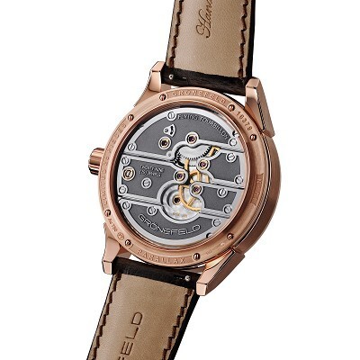 5N rose gold case, 43mm diameter, 12.5mm thickness, Sapphire crystal front and back, Caliber G-03 manual-winding movement, 27 jewels, 21,600 vibrations per hour,72-hour power reserve,Leather strap, Pin buckle, Water resistance: 30 meters.