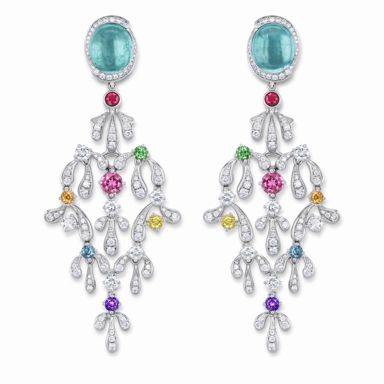 • A pair of ear pendants with detachable drops, allowing them to be worn either as elegant Paraiba tourmaline earrings or as simple studs for a more understated look.