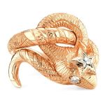 The latest creation elevates the concept with more sophisticated diamond pavé craftsmanship, giving the tiger a touch of mythical allure. The top of the ring depicts a lifelike tiger head, while the opposite end transforms into a split fishtail.