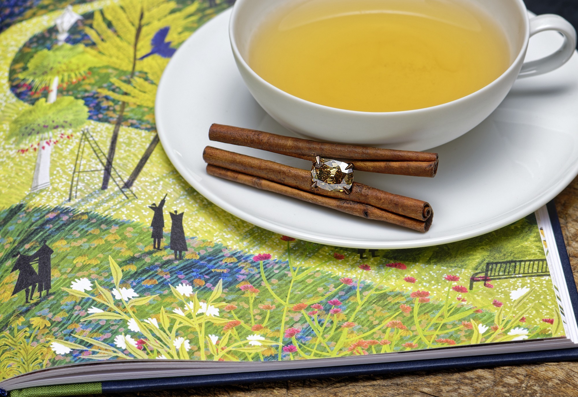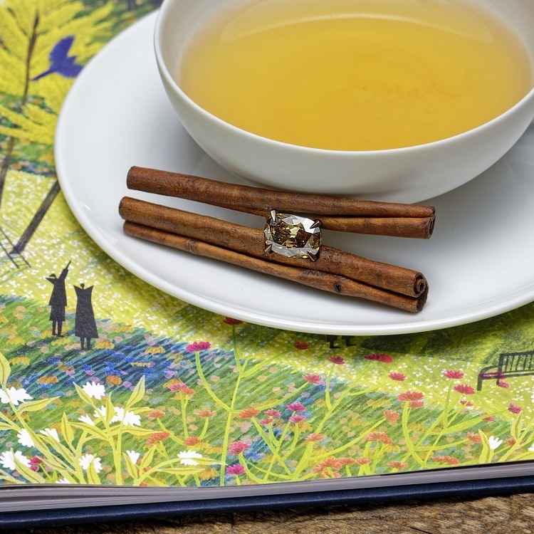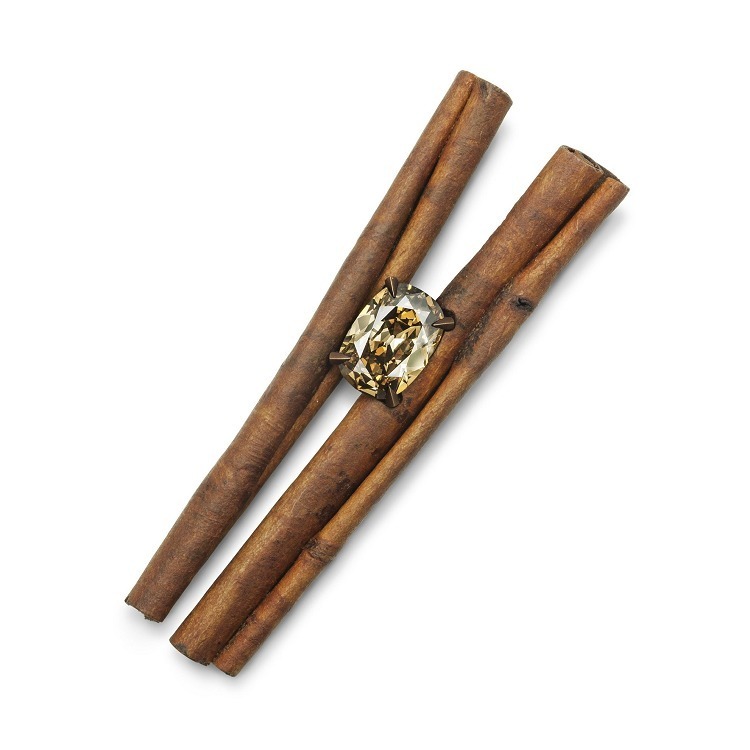 Also noteworthy is the use of novel and special materials. For the Cinnamon brooch, Hemmerle initially considered using bronze to mimic cinnamon’s rough surface. After months of research, they ultimately decided to use treated natural cinnamon. A deep brown diamond is set between the cinnamon sticks, held by four delicate copper prongs, creating a captivating juxtaposition of rustic and luxurious elements.