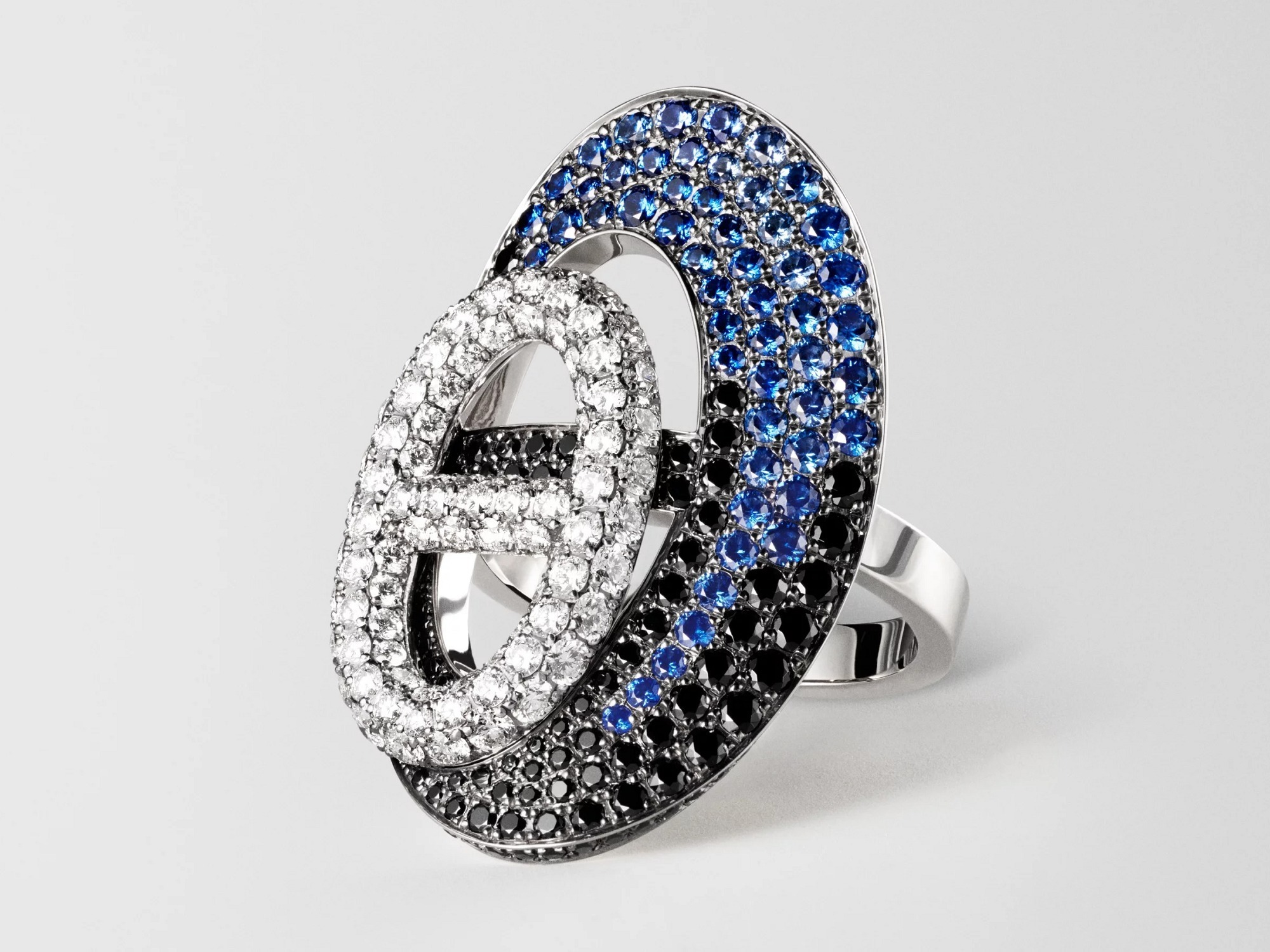 This collection centers around Hermès’ signature design element—the “anchor chain”—infusing the simple graphic with rich layers: