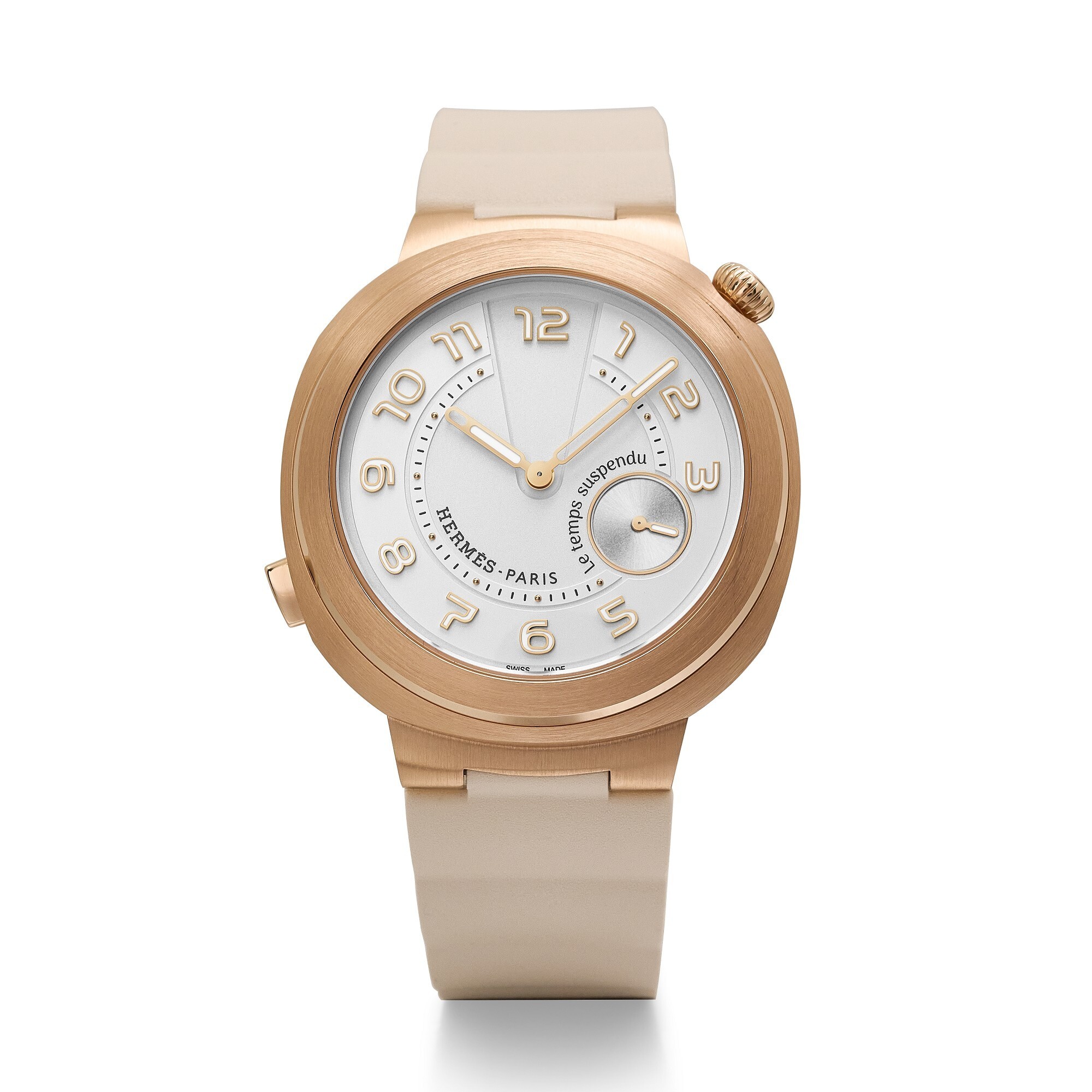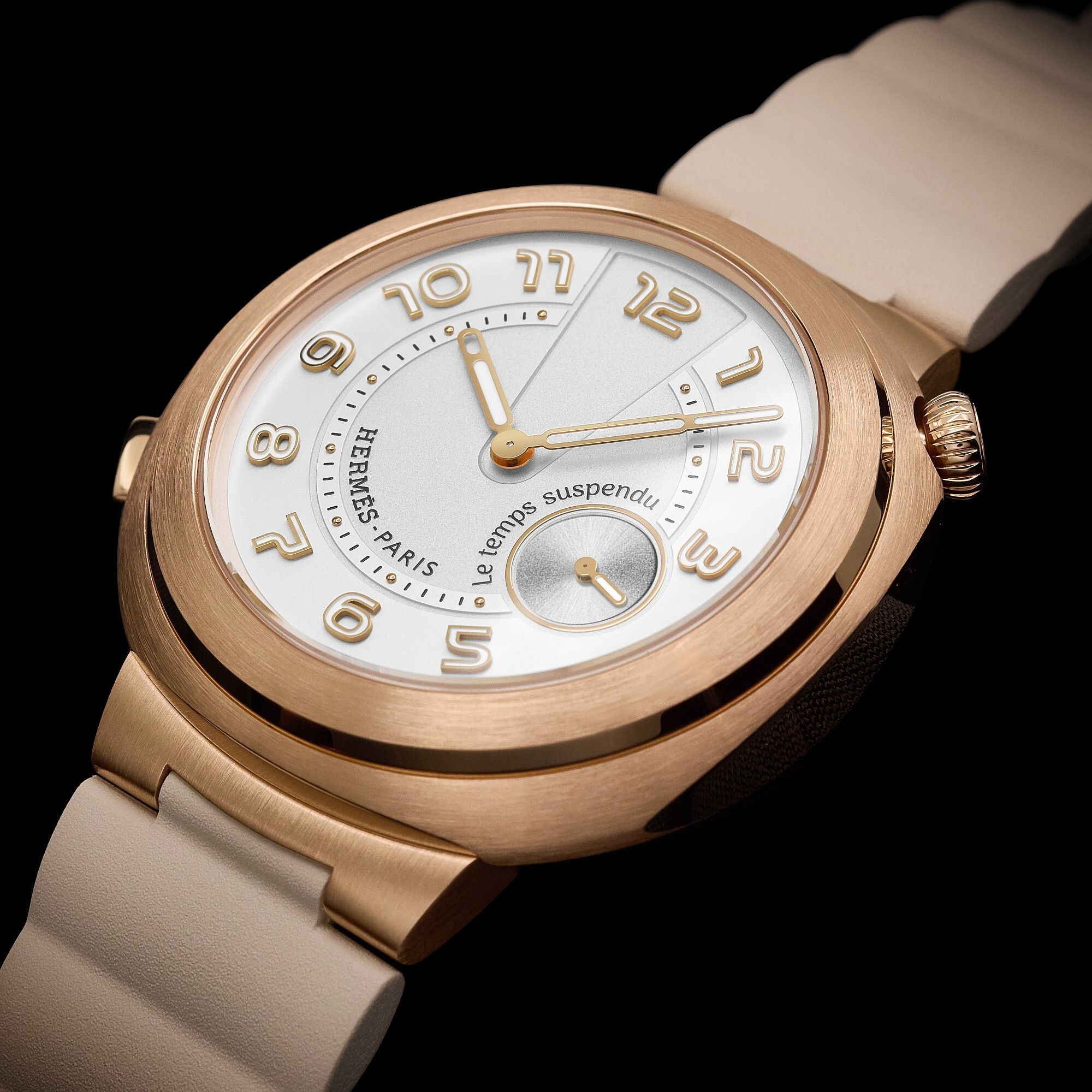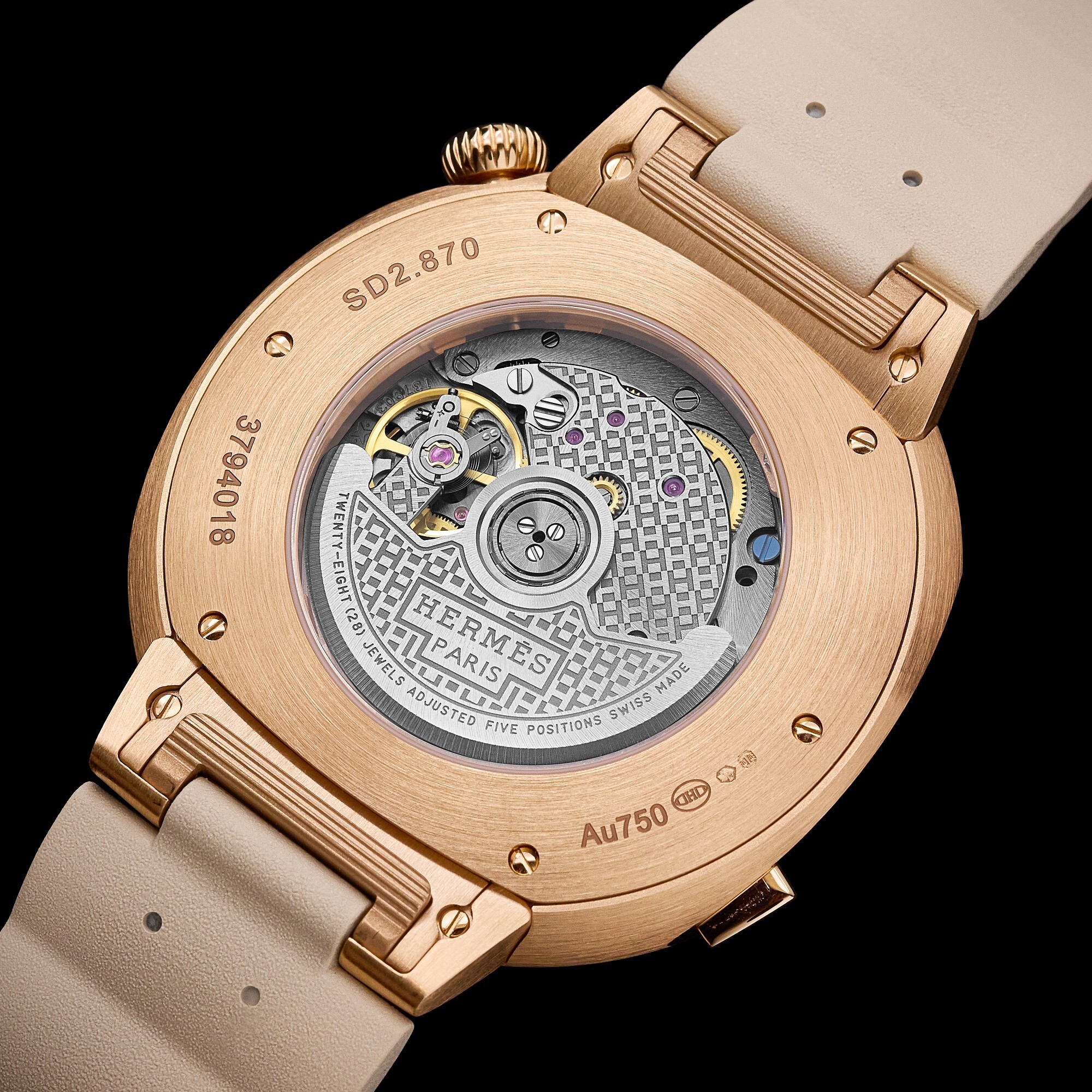 The watch is powered by the H1912 automatic movement with a frequency of 28,800 vibrations per hour and a power reserve of 50 hours. It can be fitted with either a rose gold bracelet with a quick-release module or a colorful rubber strap, offering versatility to suit any mood.