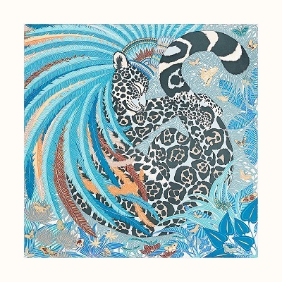 The original “Jaguar Quetzal” motif was created by British artist Alice Shirley, drawing inspiration from the Aztec civilization’s Jaguar Warriors. In the artwork, the jaguar curls up in peaceful repose, its tail raised elegantly while a magnificent feathered headdress adorns its head — the flowing plumes naturally extending down its back in graceful motion.