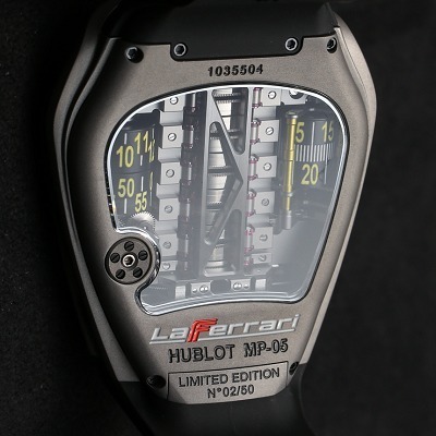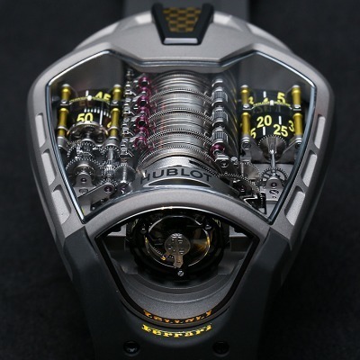 The MP-05 LaFerrari immediately captured everyone’s attention when it was first released in 2013, thanks to its engine bay-inspired design and impressive power reserve performance. This year, Hublot has launched a new version with a titanium case and yellow hour markers, featuring a more noticeable luminescent coating on the numerals, making it easier to read the time compared to the first red version.