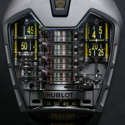 The entire HUB9005.H1.6 movement is entirely designed by Hublot, with the biggest challenge being to ensure a stable power output while providing an ultra-long power reserve.