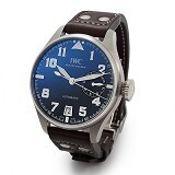 Stainless steel case, 46mm diameter, 16mm thickness, sapphire crystal, blue dial, IWC Calibre 51111 movement, 42 jewels, 21,600 vph, 7-day power reserve, calfskin strap, stainless steel buckle, 60m water resistance.