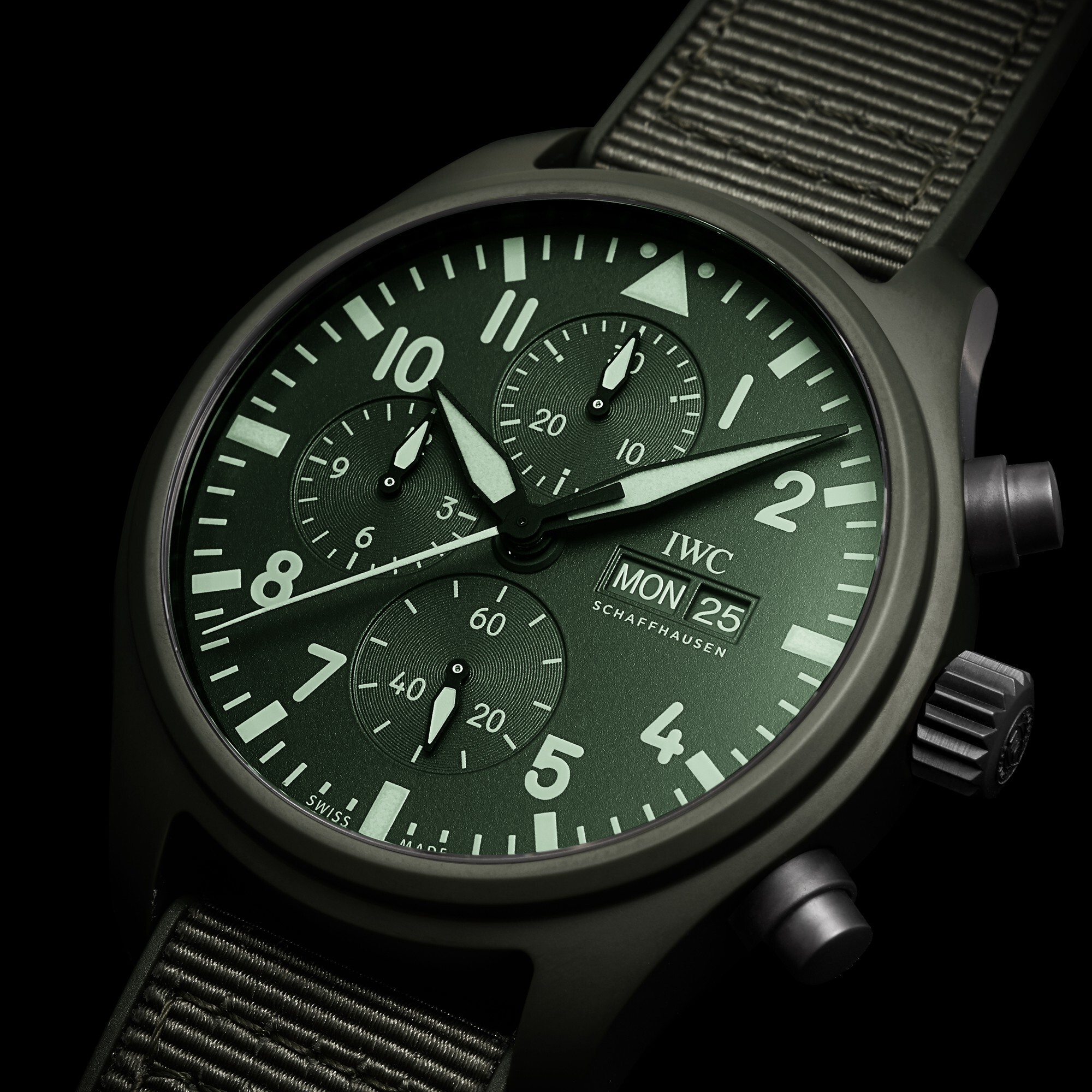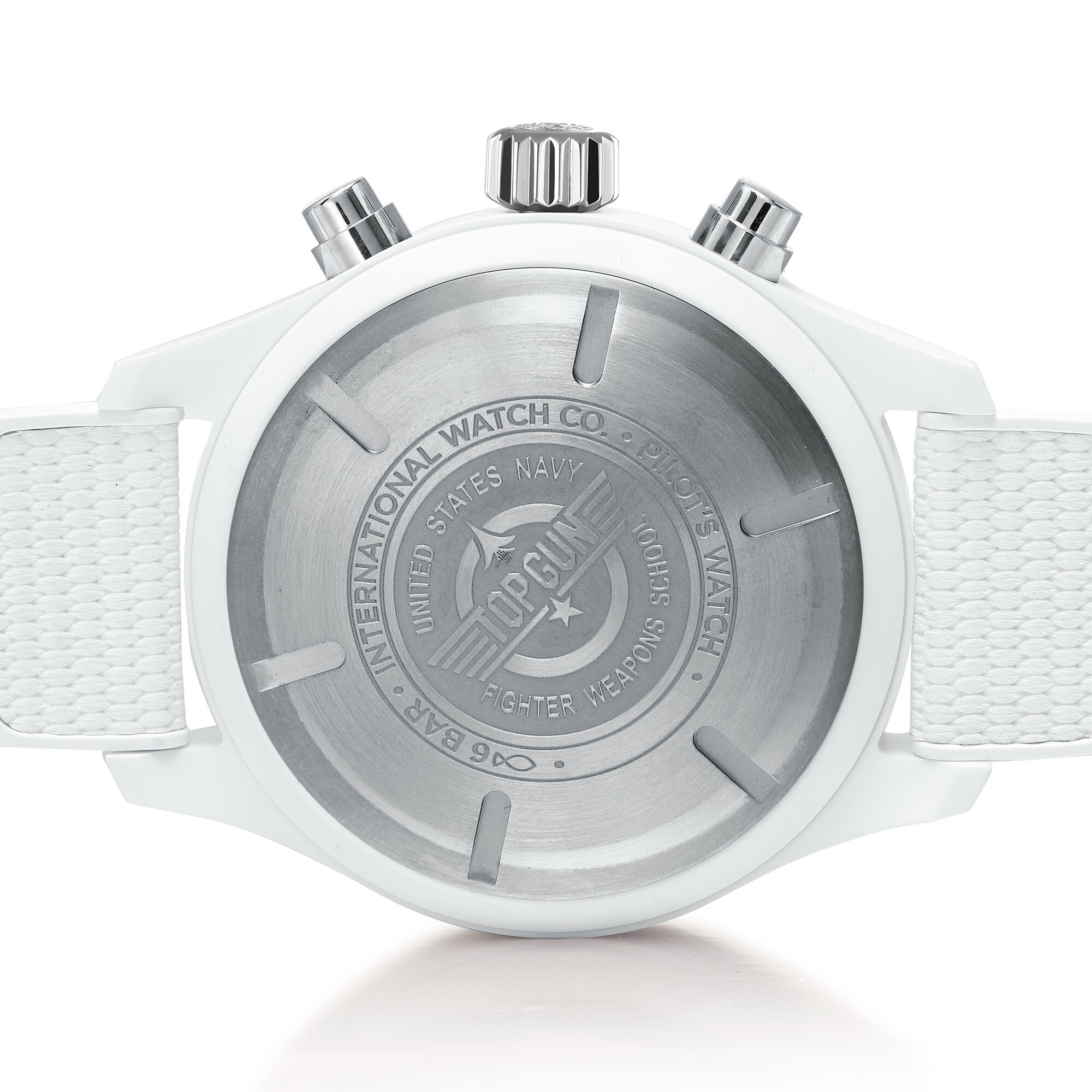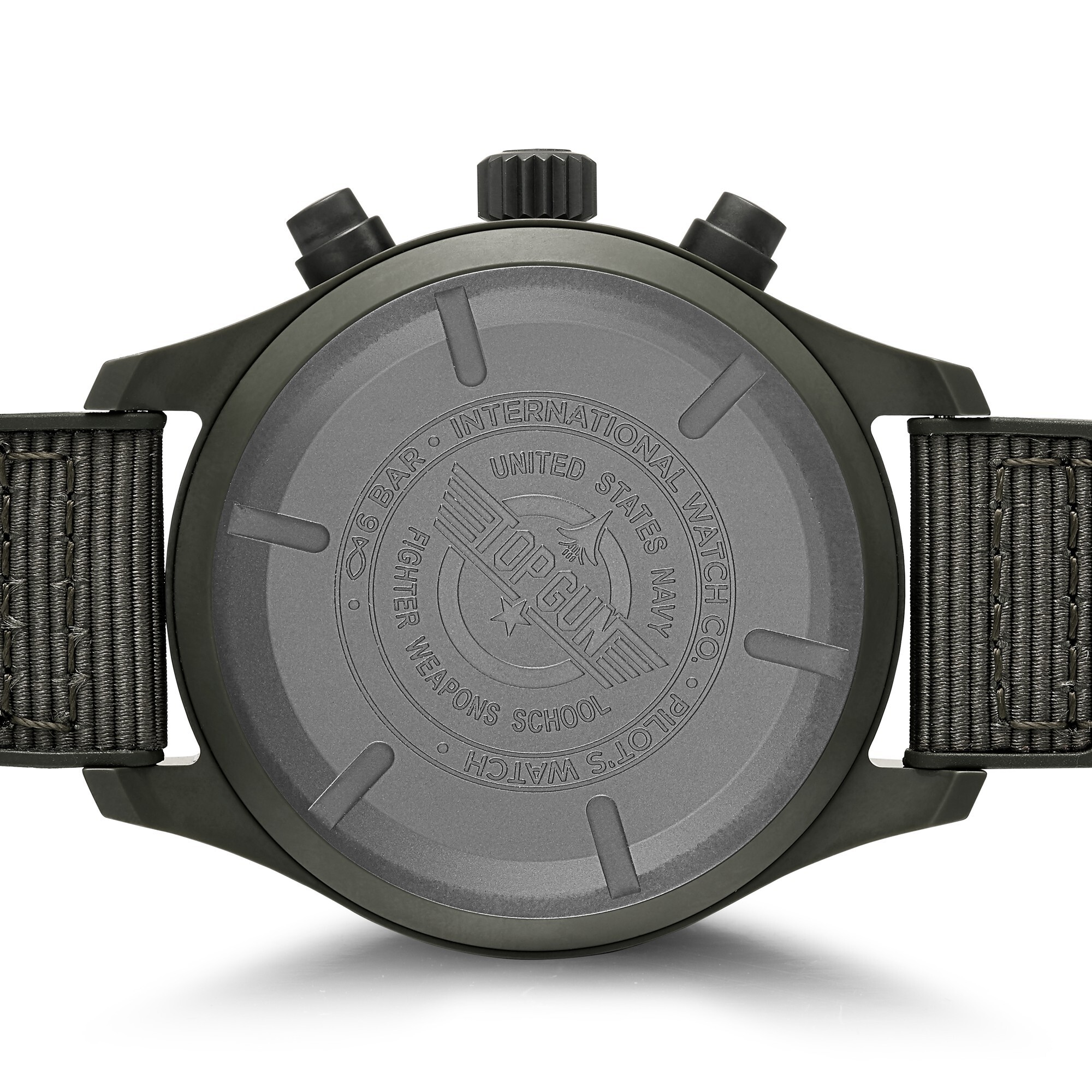 Both new models are powered by the in-house IWC-manufactured Caliber 69380 self-winding movement, beating at 28,800 vibrations per hour and offering a 46-hour power reserve. A soft-iron inner case provides protection against magnetic fields, while the specially reinforced sapphire crystal can withstand sudden pressure changes. Water resistance is 60 meters. The case back is engraved with the classic “TOP GUN” logo.
