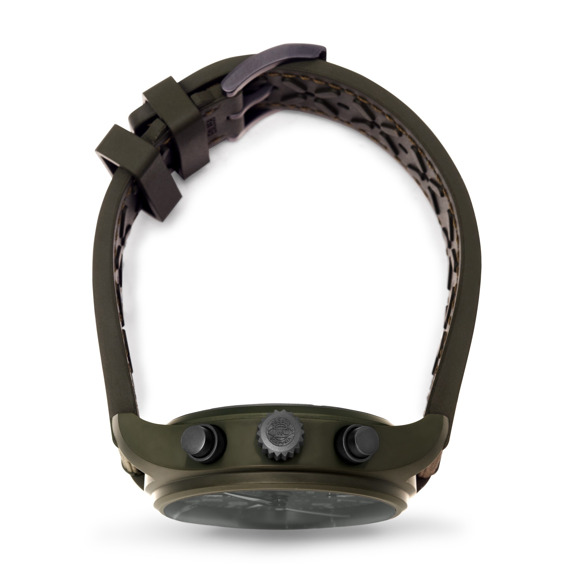 Forest Green Special Edition: The case and dial are finished in a subdued “Forest Green” hue, with dial markers in a subtle light green tone, creating a cohesive aesthetic. The chronograph pushers and case back are crafted from matte black Ceratanium®, a material that combines the lightness of titanium with the scratch resistance of ceramic.
