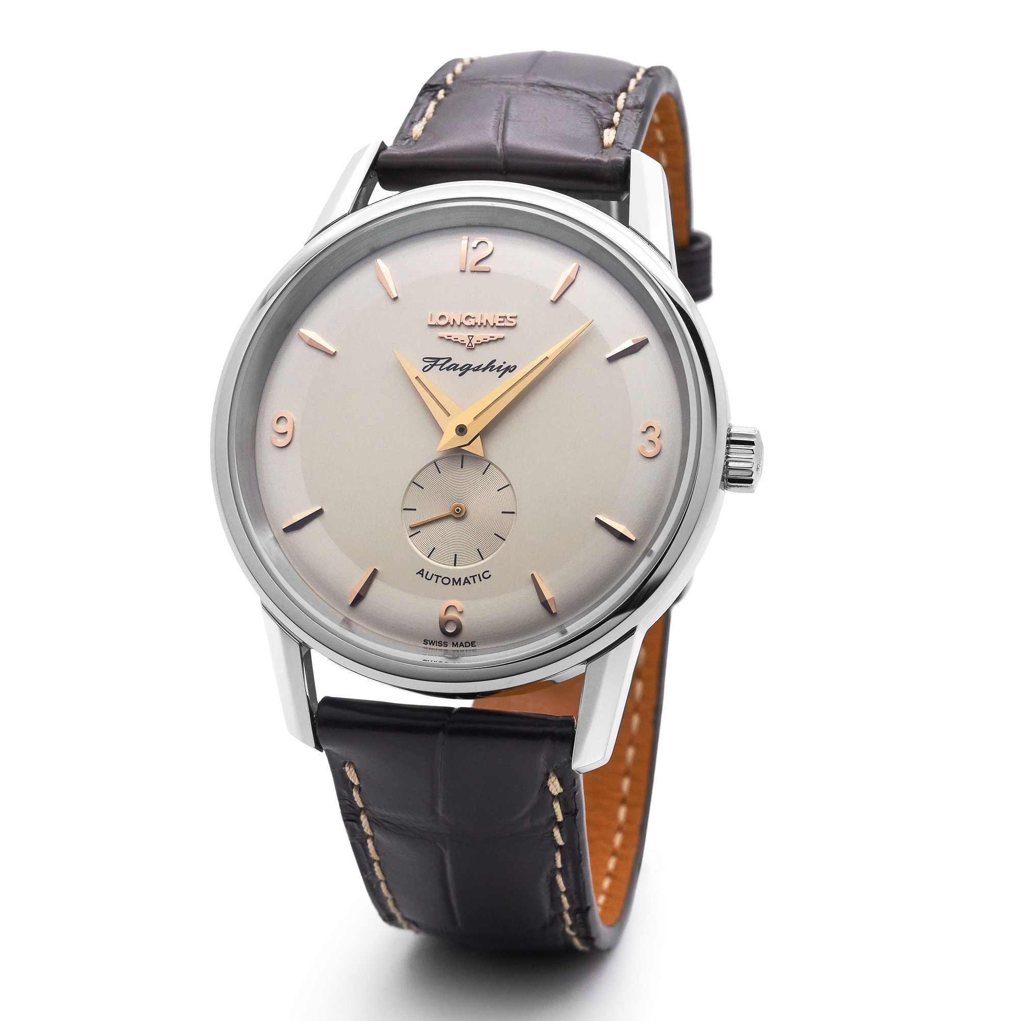 This year, Longines celebrates the 60th anniversary of its Flagship collection with the release of a highly vintage-inspired heritage reissue. The new model takes direct inspiration from an original Flagship vintage watch, featuring a smaller, classic case size, a restrained and elegant dial design, and a caseback engraved with the signature “flagship warship” medallion, faithfully recreated from the original.