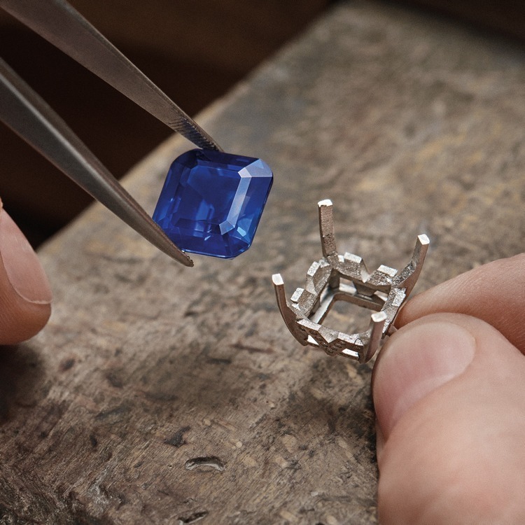 Francesca Amfitheatrof specifically selected 23 LV Monogram star-cut diamonds to alternate with the 23 sapphires, like brilliant stars in the night sky. The “LV Monogram” star cut is a unique diamond cut exclusive to the brand. Each diamond has 53 facets, and the cutting difficulty and rough diamond consumption ratio far exceed those of conventional cuts, making it a perfect symbol of the brand’s identity.