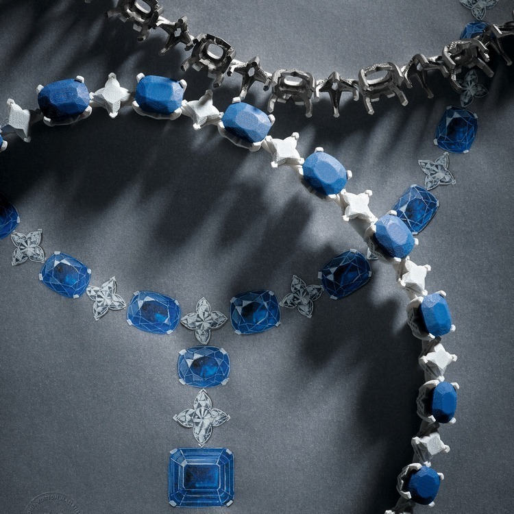 Francesca Amfitheatrof, Artistic Director of Jewelry at Louis Vuitton, stated: “This is the first time in my life I have had the privilege of designing a jewel of such royal importance. This piece brings together an incredible collection of high-quality, rare Kashmir sapphires, integrated with Louis Vuitton’s Monogram star-cut diamonds, moving the heart like a spectacular constellation of gems.”