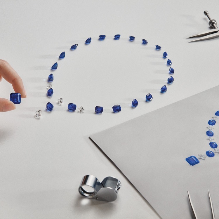 This piece was meticulously crafted by Louis Vuitton’s High Jewelry workshop at Place Vendôme. Jewelers first forged each platinum link using the lost-wax casting technique. Then, polishers performed all-angle polishing; each link component required up to one hour of polishing to achieve a mirror-grade finish. Finally, stone-setters perfectly mounted the sapphires and diamonds into their settings – a task requiring immense patience, sometimes taking up to two days to set a single sapphire.
