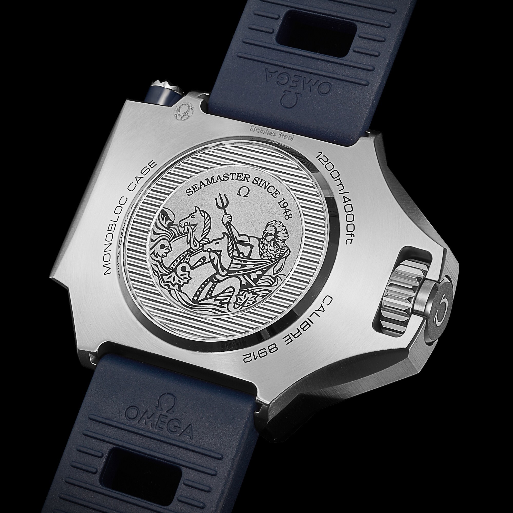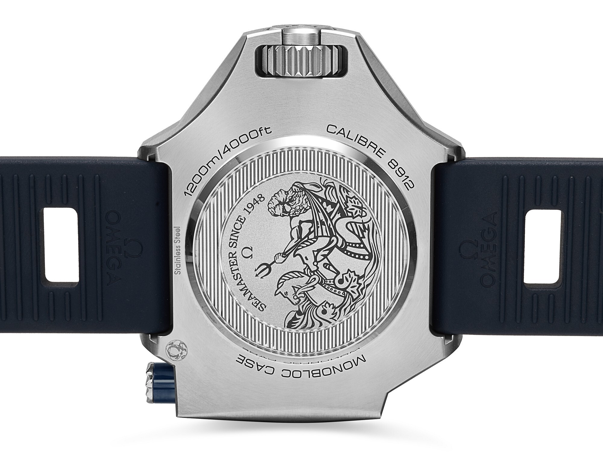 Powered by the OMEGA Caliber 8912 self-winding movement, providing a 60-hour power reserve. The case back features a laser-engraved commemorative Seamaster hippocampus motif, set against a wave-patterned border. The watch guarantees professional 1200-meter water resistance.