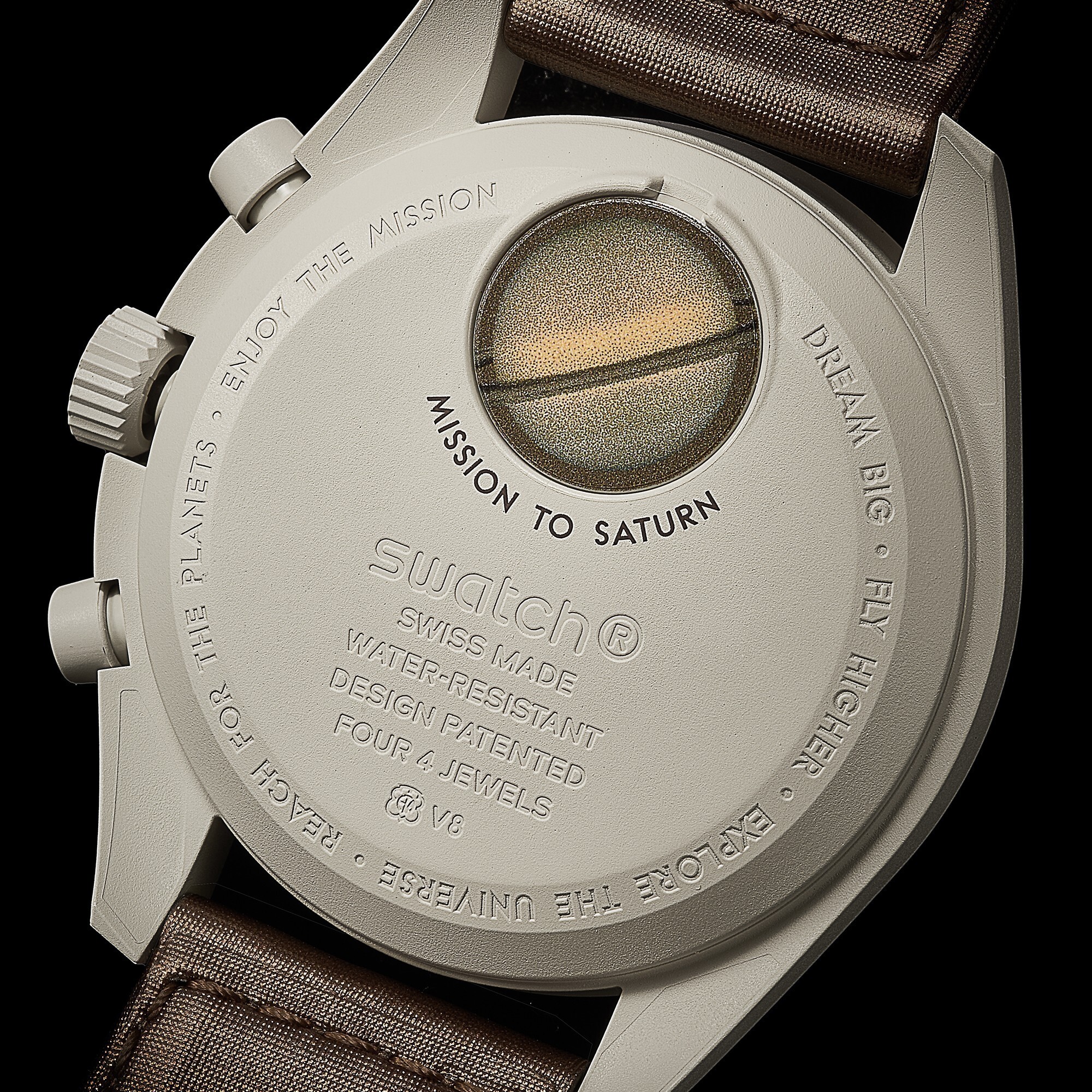 The watch is powered by a quartz movement. The case back also features thoughtful details – the battery cover is adorned with an image of Saturn, and the watch’s mission name is printed below.