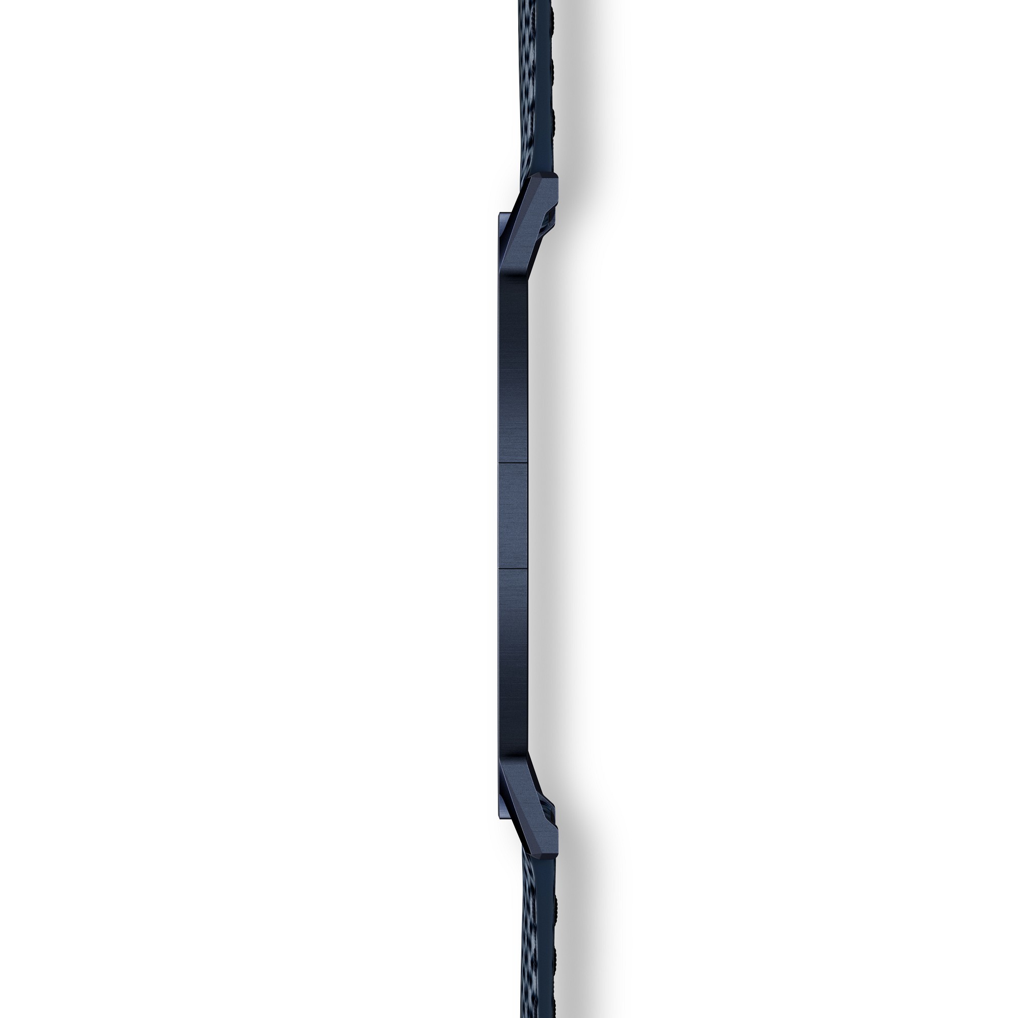 The 41.5mm case is crafted from cobalt alloy, a metal known for its exceptional hardness and strength, ensuring the ultra-thin case remains shock-resistant and reliable for daily wear. A deep blue PVD coating sets off the golden movement components, hands, and markers, providing excellent legibility. The sapphire crystal is a mere 0.2mm thick, and the crown at 9 o’clock features an integrated design, contributing to the watch’s perfectly seamless lines.