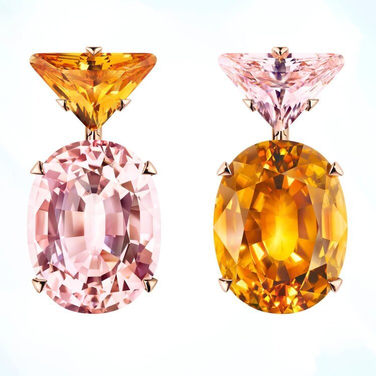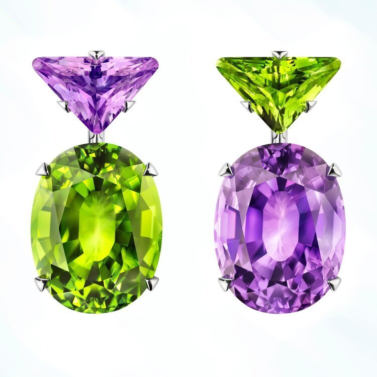 The designers applied refined color aesthetics to gemstone pairing — using complementary color schemes to highlight harmony and depth, such as the refreshing blue-green tones of aquamarine and peridot, or the soft peach-pink blend of citrine and morganite. Meanwhile, contrasting color combinations bring a lively visual tension: amethyst with peridot, and aquamarine with morganite, each expressing a striking vibrancy.