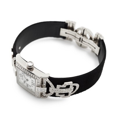 This high jewelry timepiece was specially created to commemorate Ralph Lauren’s New York flagship boutique located at 867 Madison Avenue, incorporating rich Art Deco decorative elements.