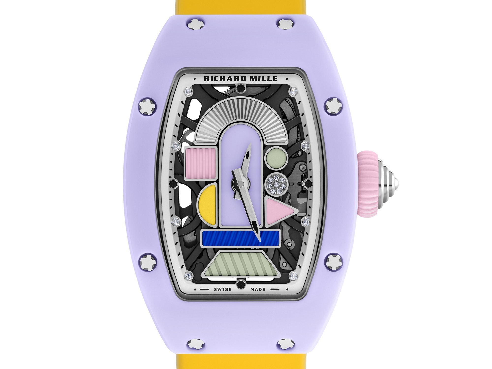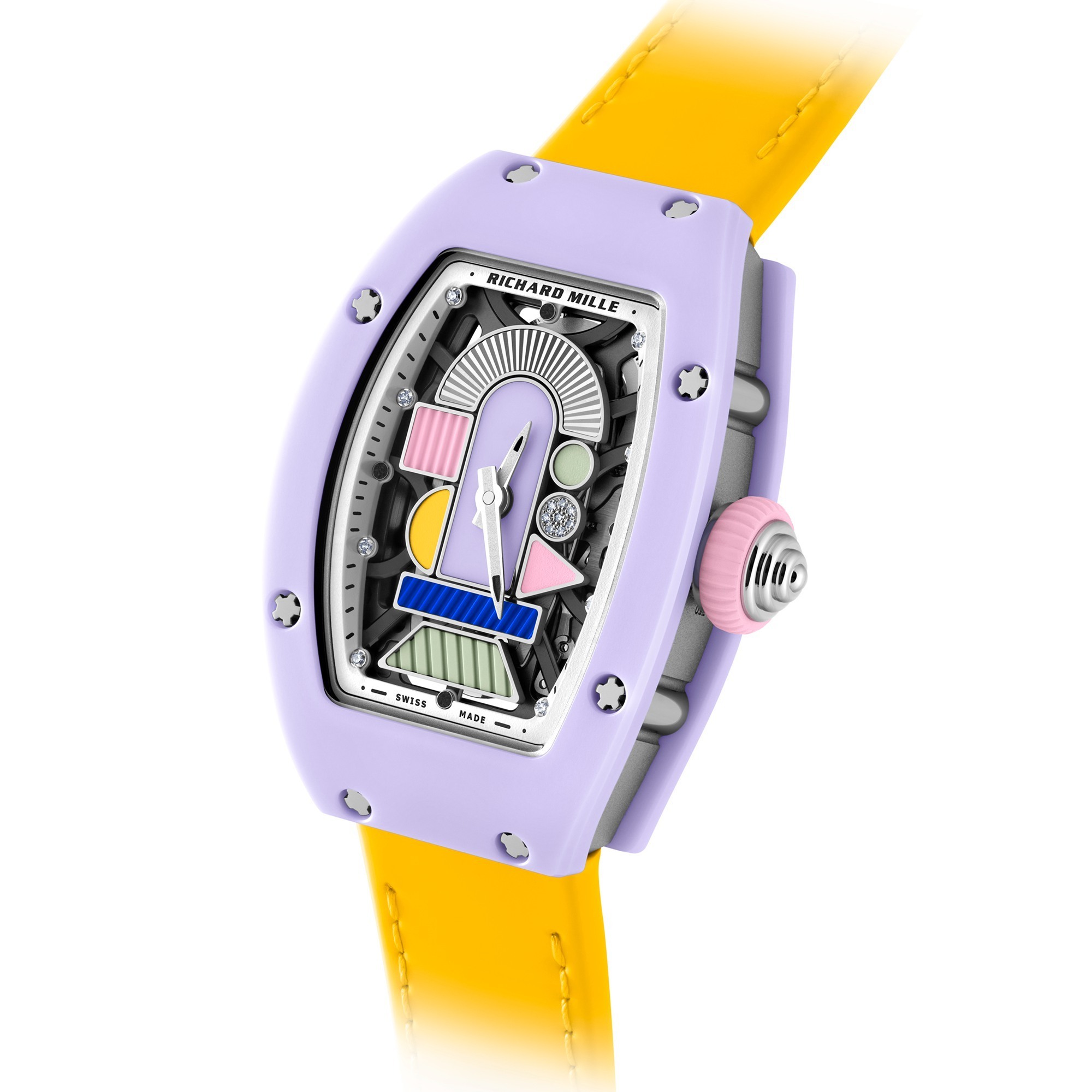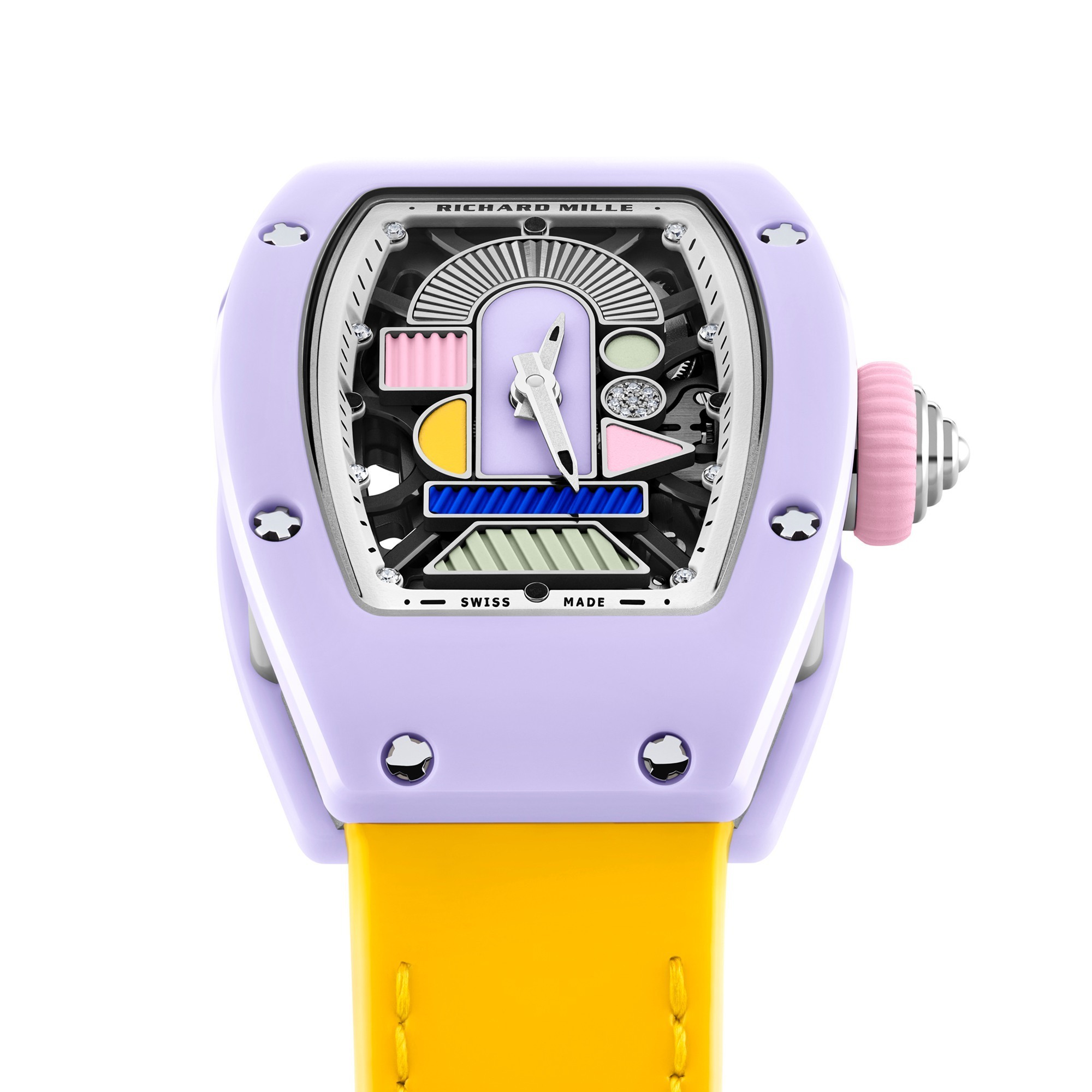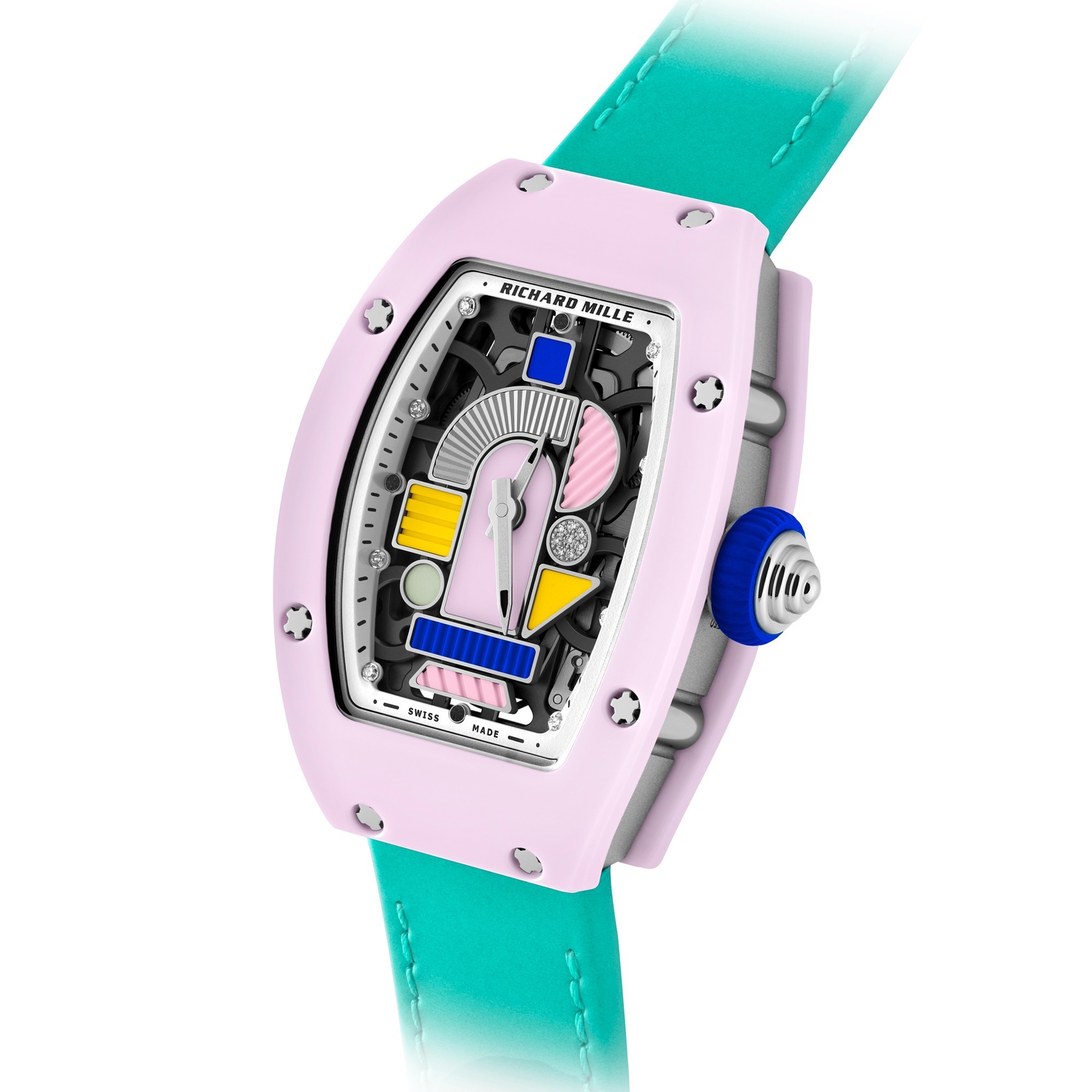 Memphis design philosophy celebrates bold, open compositions where color and geometry interact freely – creating designs that feel simultaneously spontaneous and rhythmic. The new dials feature a playful, building-block-like composition of circles, rectangles, triangles, trapezoids, and sector shapes. Each geometric component is individually treated with diverse colors and materials, including colored ceramic inlays, rubber accents, hand-applied guilloché engraving, and brilliant diamond settings. Through this intricate craftsmanship, every dial becomes a unique expression of creative inspiration.