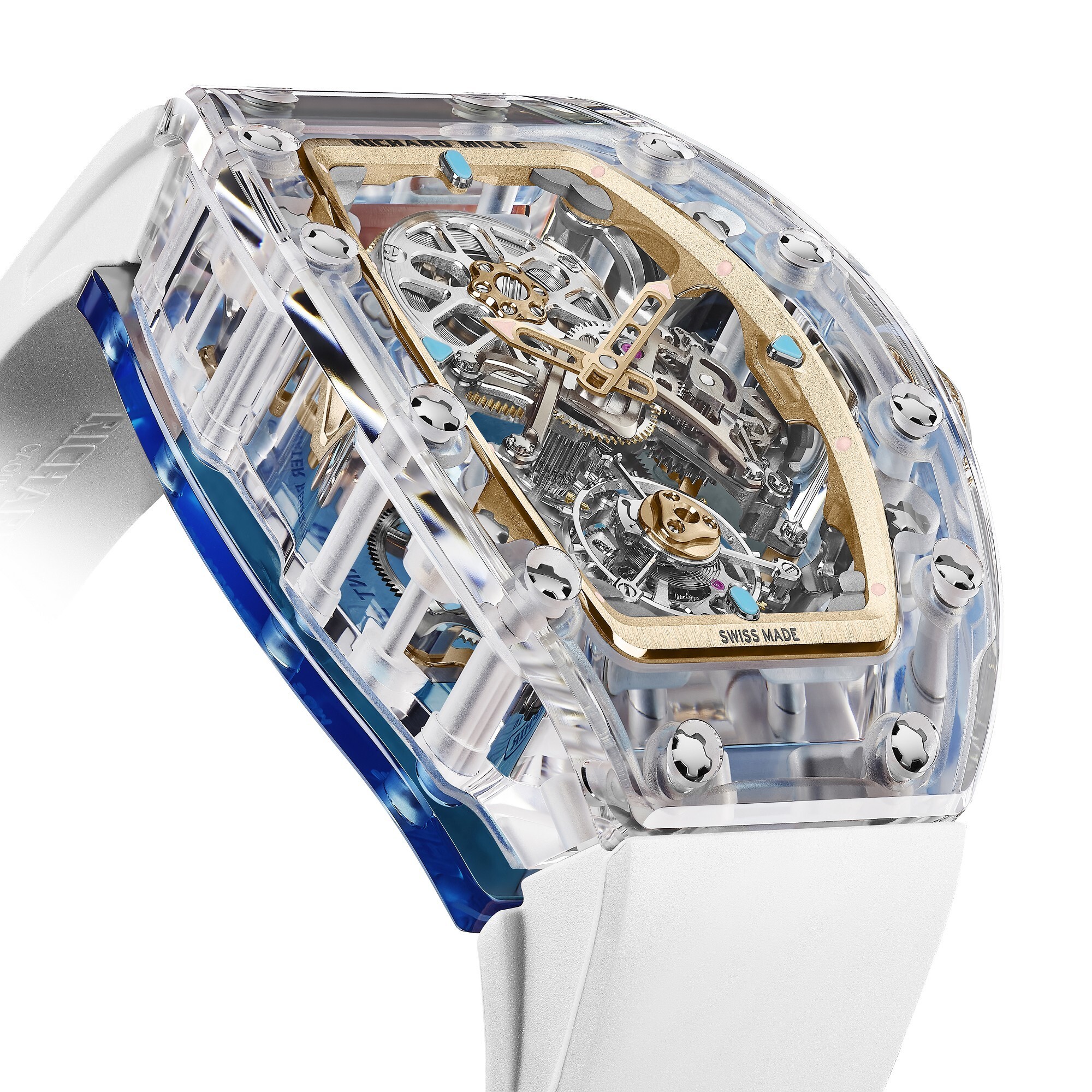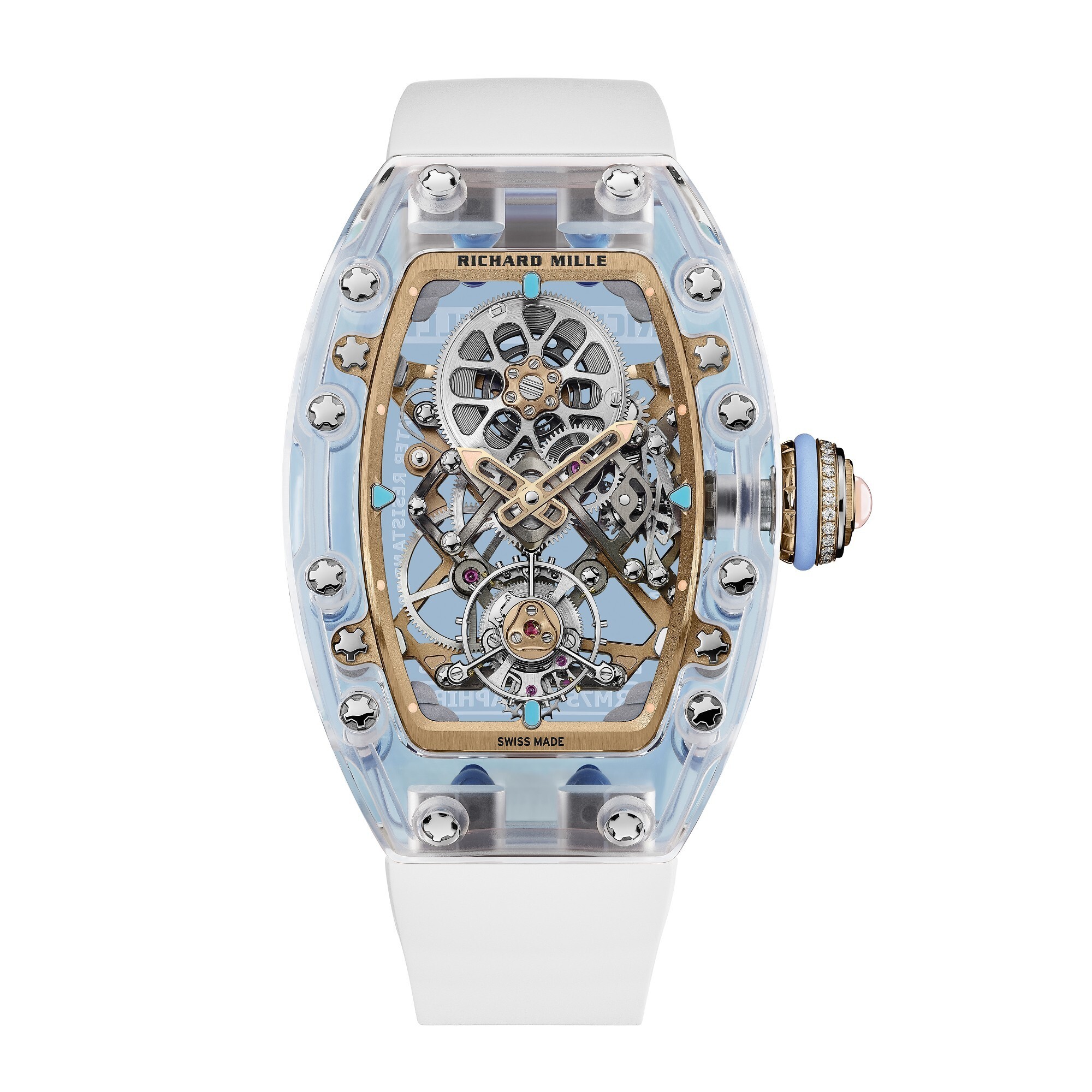 Crafting the sapphire case is an immense technical challenge. Each component must be precisely machined to achieve perfectly flowing curves, while the bezel and screw fittings are painstakingly polished by hand. Every case requires over 1,000 hours of production, resulting in a crystalline, luminous transparency that captures light from every angle.