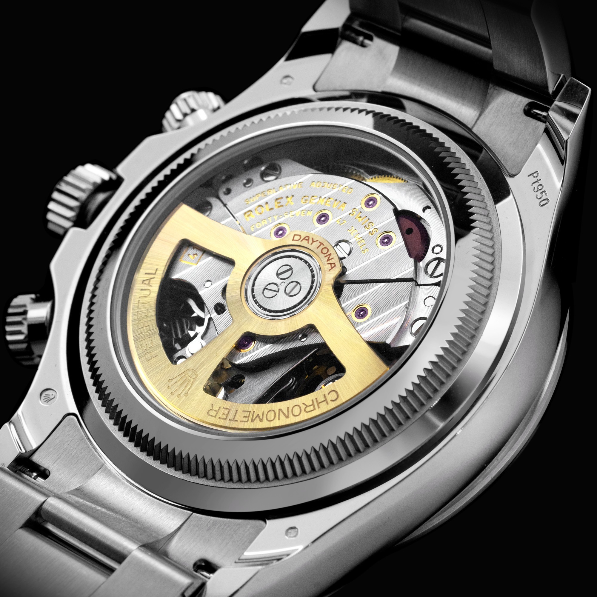 This new model is Rolex’s first sports watch with a transparent case back. Through the sapphire crystal, one can view the new in-house Calibre 4131 self-winding movement. This movement is equipped with a patented Chronergy escapement and a blue Parachrom hairspring, achieving a precision rating of -2/+2 seconds per day. It offers a 72-hour power reserve.
