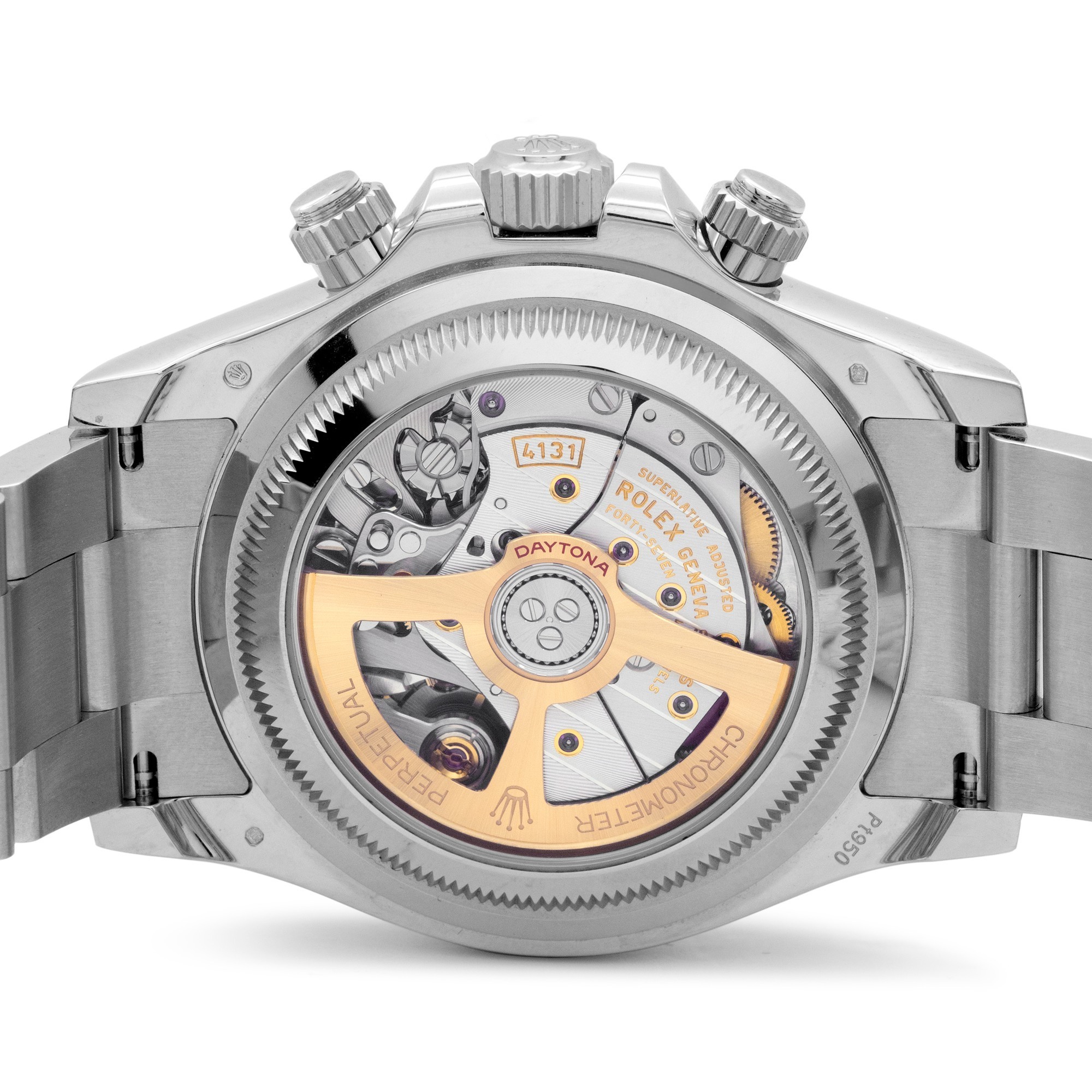 This new model is Rolex’s first sports watch with a transparent case back. Through the sapphire crystal, one can view the new in-house Calibre 4131 self-winding movement. This movement is equipped with a patented Chronergy escapement and a blue Parachrom hairspring, achieving a precision rating of -2/+2 seconds per day. It offers a 72-hour power reserve.