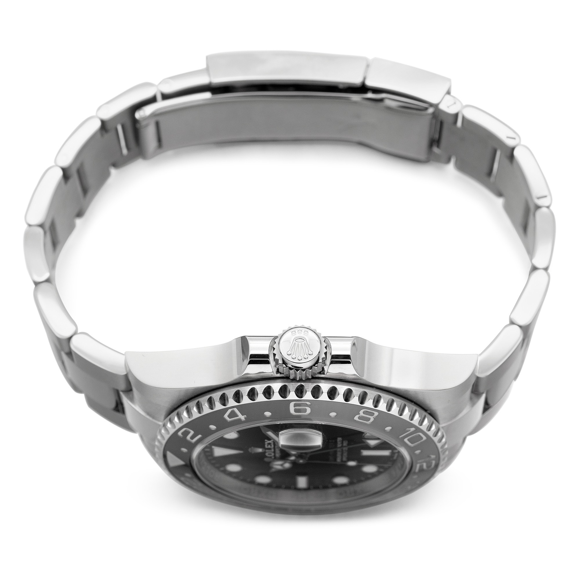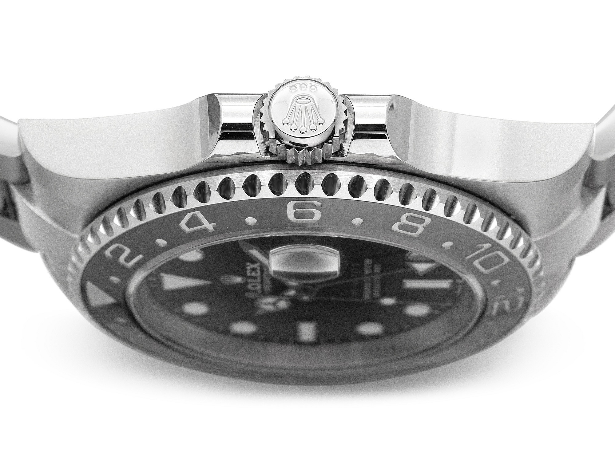 Case: Stainless steel, 40mm diameter, 11.9mm thickness,Bezel: Ceramic, black and gray, rotatable,Crown: Screw-down,Crystal: Sapphire,Dial: Black lacquer,Hands: White gold with Chromalight luminescence,Movement: Caliber 3285 automatic, 31 jewels, 28,800 vph, 70-hour power reserve,Bracelet: Stainless steel Oyster, Oysterlock clasp,Water resistance: 100 meters,Complications: GMT (dual time).