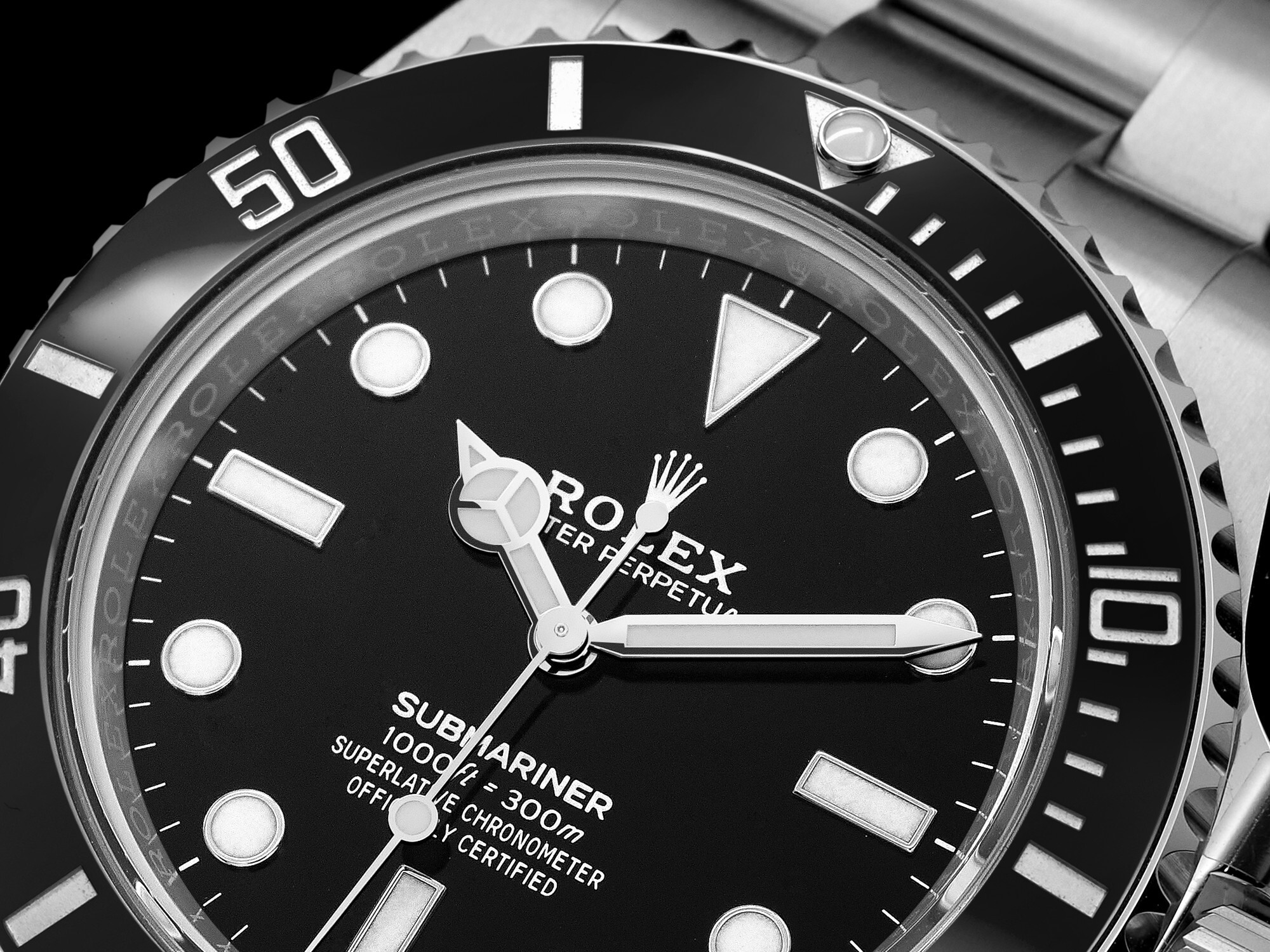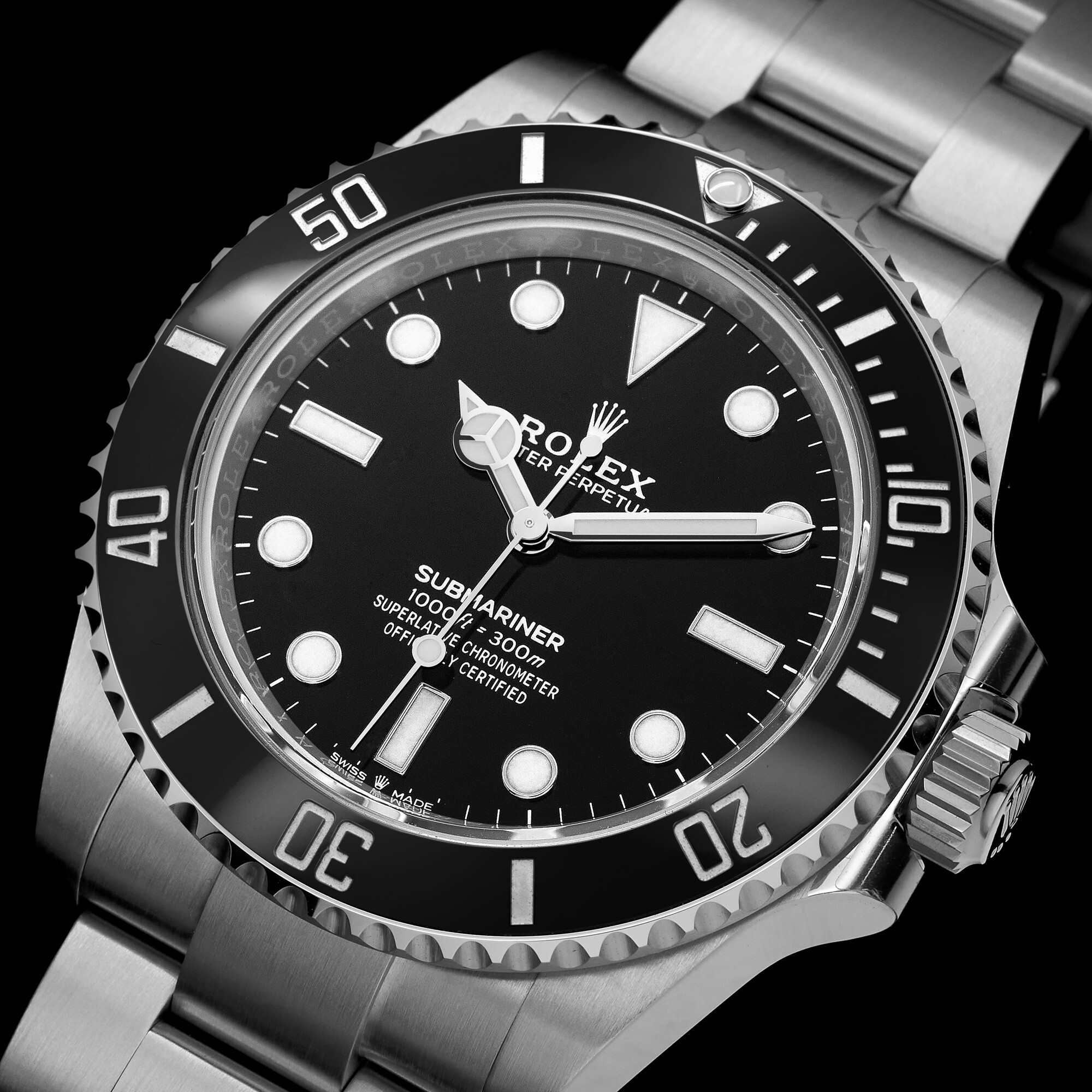 The change in the case dimensions of the new Submariner is quite subtle. Although the diameter has increased by 1mm, the watch appears more proportionally compact due to a slightly larger bezel, more tapered lugs, and more pronounced crown guards on either side of the crown. The numerals and markers on the black ceramic bezel are coated with a platinum PVD layer, making them highly legible and scratch-resistant.