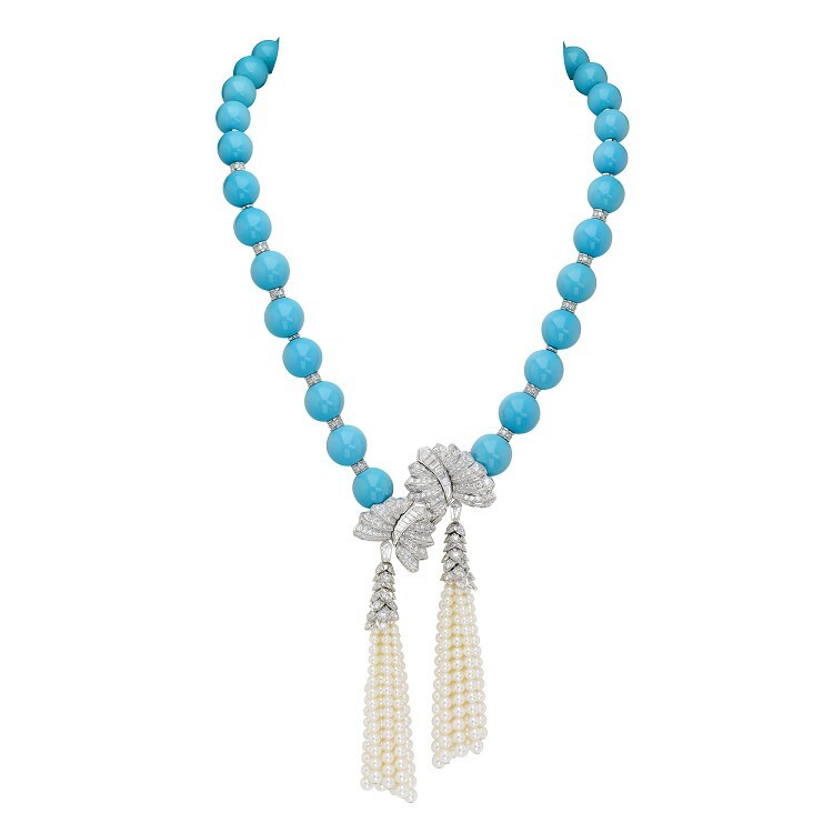 white enamel as its base, set with brightly hued colored diamonds to depict a lively summer beach scene.