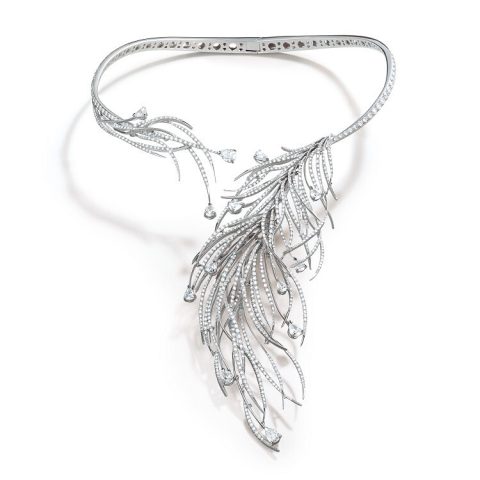 Part of Damiani’s Tribute collection, the Charleston diamond necklace draws inspiration from the lightness and elegance of feathers, crafted in a flowing open design