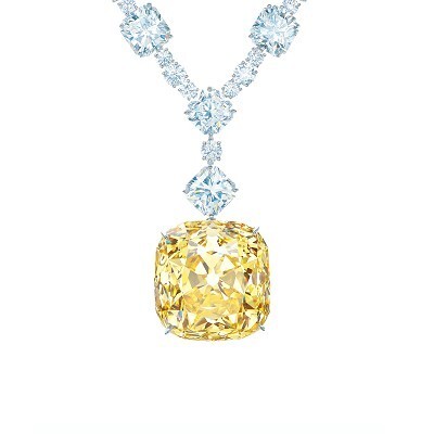 The Tiffany Diamond is one of the largest yellow diamonds ever discovered. Unearthed in 1877 from the Kimberley Mine in South Africa, the rough stone weighed 287.42 carats (57.484 g). After being expertly cut, it became a 128.54-carat cushion-shaped yellow diamond with 82 facets, radiating extraordinary brilliance. Throughout history, only two women have ever worn this magnificent gem — Mrs. Mary Whitehouse, a prominent socialite, and Audrey Hepburn, who famously wore it in the promotional photos for Breakfast at Tiffany’s. Over the years, The Tiffany Diamond has been mounted in four different settings, two of which were original creations by the legendary designer Jean Schlumberger: the Ribbon Rosette necklace featured in Breakfast at Tiffany’s (1961) and the iconic Bird on a Rock design showcased during Schlumberger’s 1995 retrospective at the Musée des Arts Décoratifs in Paris. From April 18 to September 23, 2007, Tiffany & Co. loaned the diamond to the Smithsonian National Museum of Natural History in Washington, D.C., where curator Jeffrey E. Post described it as “the largest diamond ever exhibited in the United States.” By comparison, the famous Hope Diamond weighs only 45.5 carats—about one-third the size of the Tiffany Diamond. In 2012, to celebrate Tiffany’s 175th anniversary, the diamond was reset into a platinum necklace adorned with over 120 carats of white diamonds. Its openwork setting, composed of 481 sparkling stones, allows light to pass through freely, illuminating the legendary yellow diamond in all its resplendent glory.