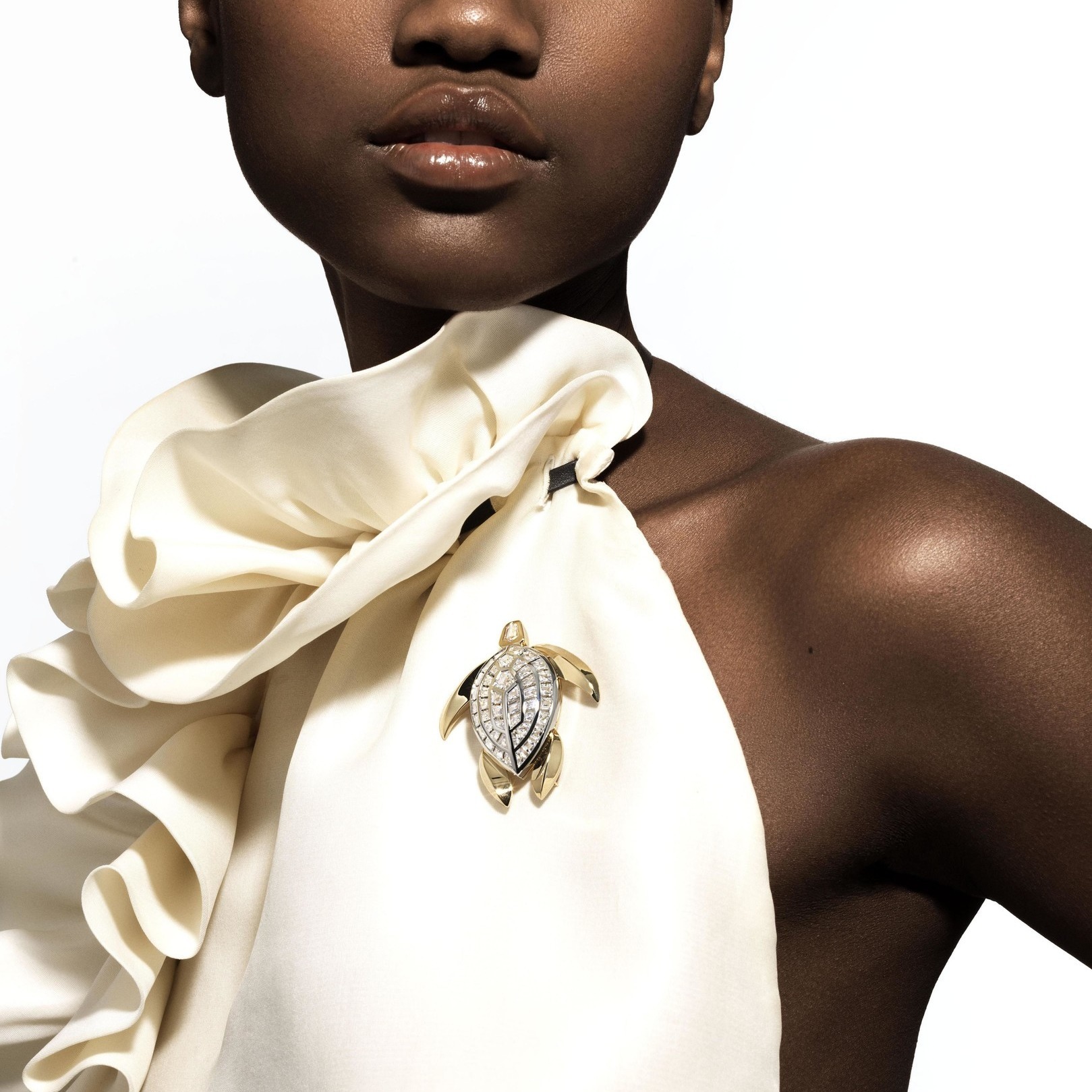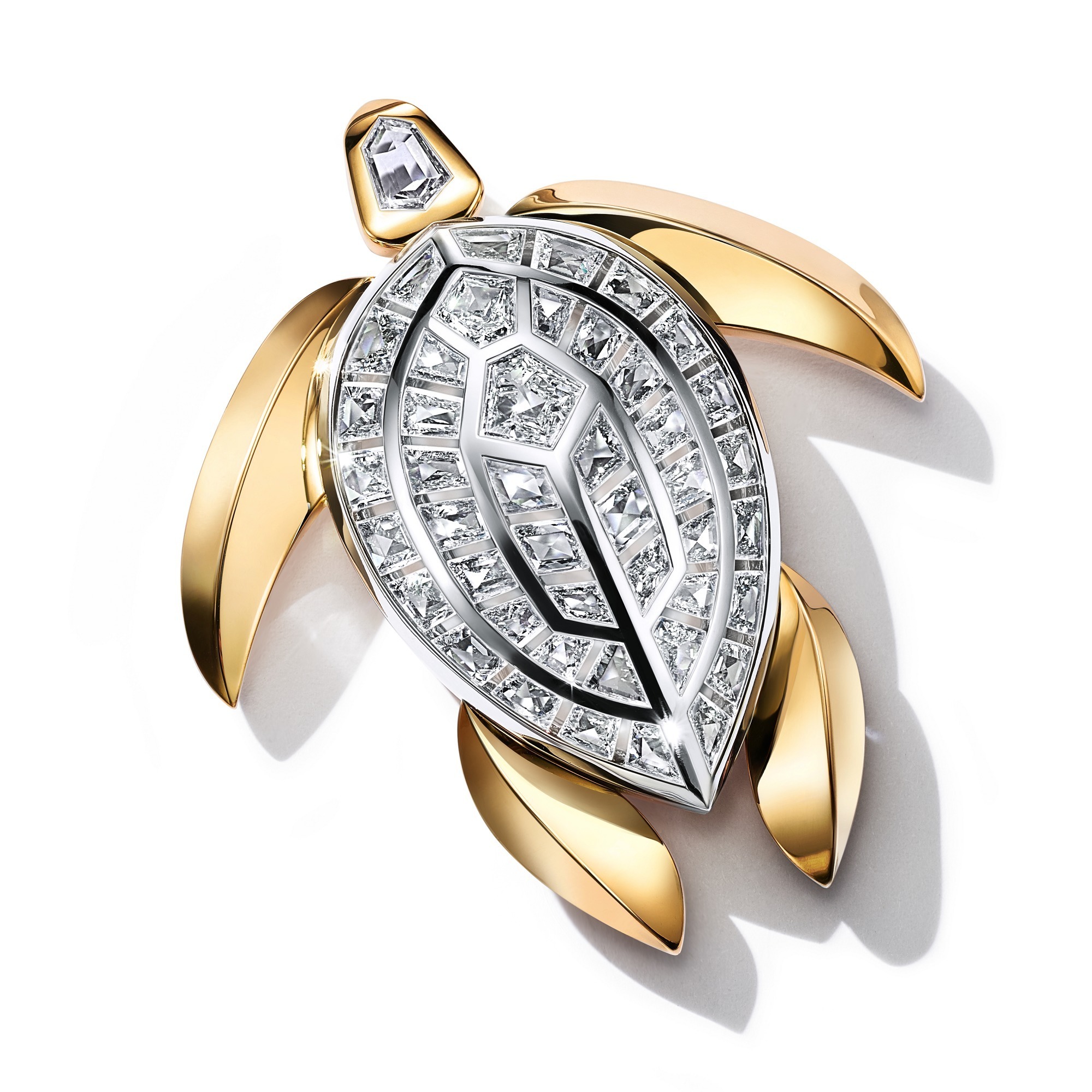 Tiffany introduced this nature-inspired brooch in the 2021 Blue Book high jewelry collection, Colors of Nature, vividly depicting a resting turtle. The entire shell is crafted with a combination of cracked-ice diamonds and custom-cut diamonds, creating a mosaic-like visual effect that is both refined and modern.