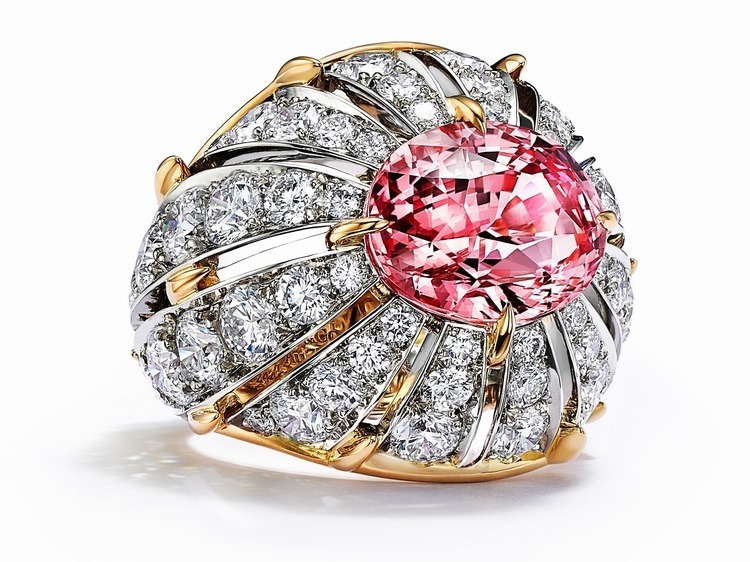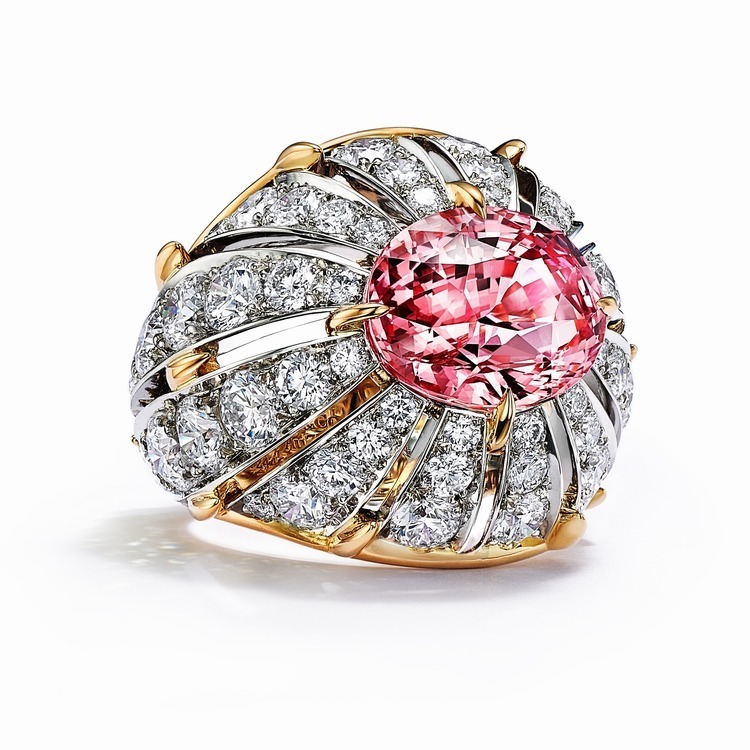 The new collection presents three pieces, all crafted in platinum and gold and set with rare padparadscha sapphires as primary stones.