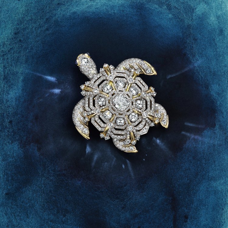 The Tiffany Sea Turtle Diamond Brooch is a captivating creation from Tiffany & Co.’s 2025 Blue Book High Jewelry Collection, designed by Chief Artistic Officer Nathalie Verdeille. Drawing inspiration from nature, this piece harmoniously blends abstract and realistic elements, bringing the serene elegance of the sea turtle to life.