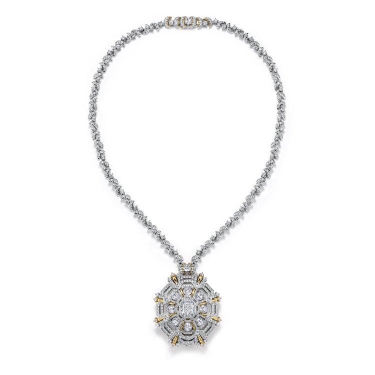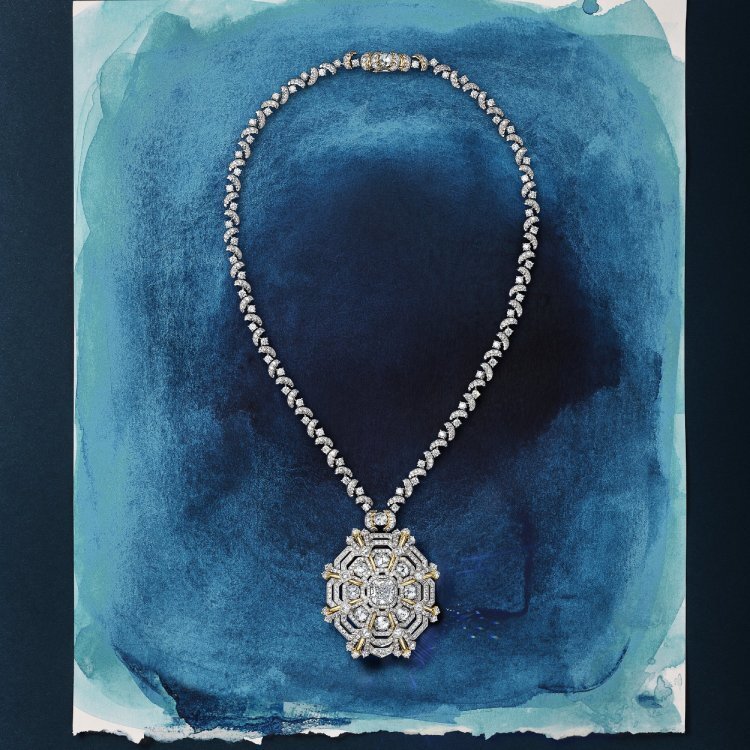 Ingeniously, the brooch incorporates a convertible mechanism, allowing the shell to detach and be worn as a pendant. The design reflects the turtle’s life between land and sea, capturing its fluid grace. The accompanying chain features white gold crescent-shaped links set with diamonds, and a round diamond connector ensures a seamless transition between pendant and chain, creating a harmonious and flowing visual line.