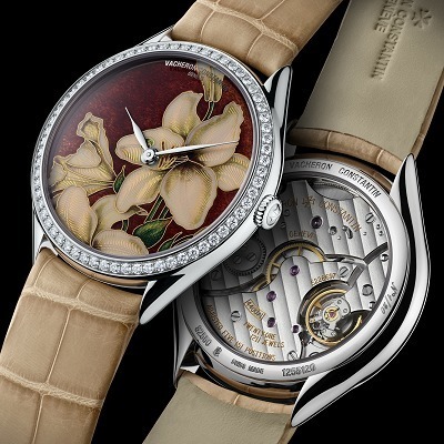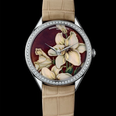 The Florilège “Virgin Lily” watch is powered by the Vacheron Constantin Caliber 4400 hand-wound mechanical movement, offering a power reserve of approximately 65 hours.