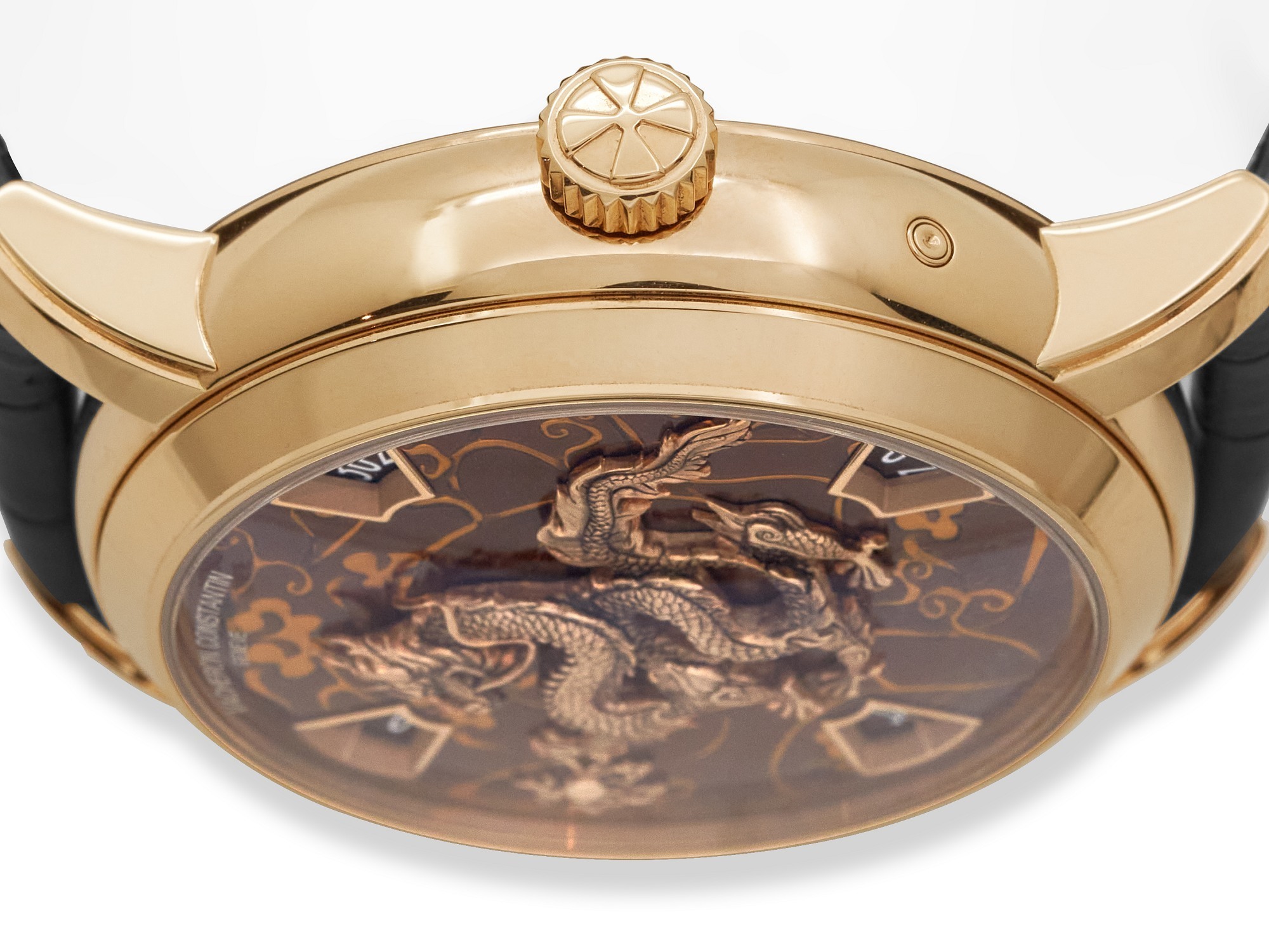 This engraved gold Dragon Year timepiece marks the culmination of Vacheron Constantin’s 12-year Zodiac engraving series, endowing it with particularly special significance.