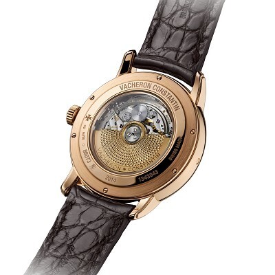 18K platinum or rose gold case, 40mm in diameter, 12.74mm thick, Sapphire crystal glass front and case back, 18K gold handcrafted dial, Vacheron Constantin Caliber 2460 G4 automatic movement, 27 jewels, 28,800 vibrations per hour, 40-hour power reserve, Geneva Seal, Mississippi alligator leather strap,Platinum/rose gold folding clasp. Limited edition of 12 pieces, each with “2014” engraved on the case back.